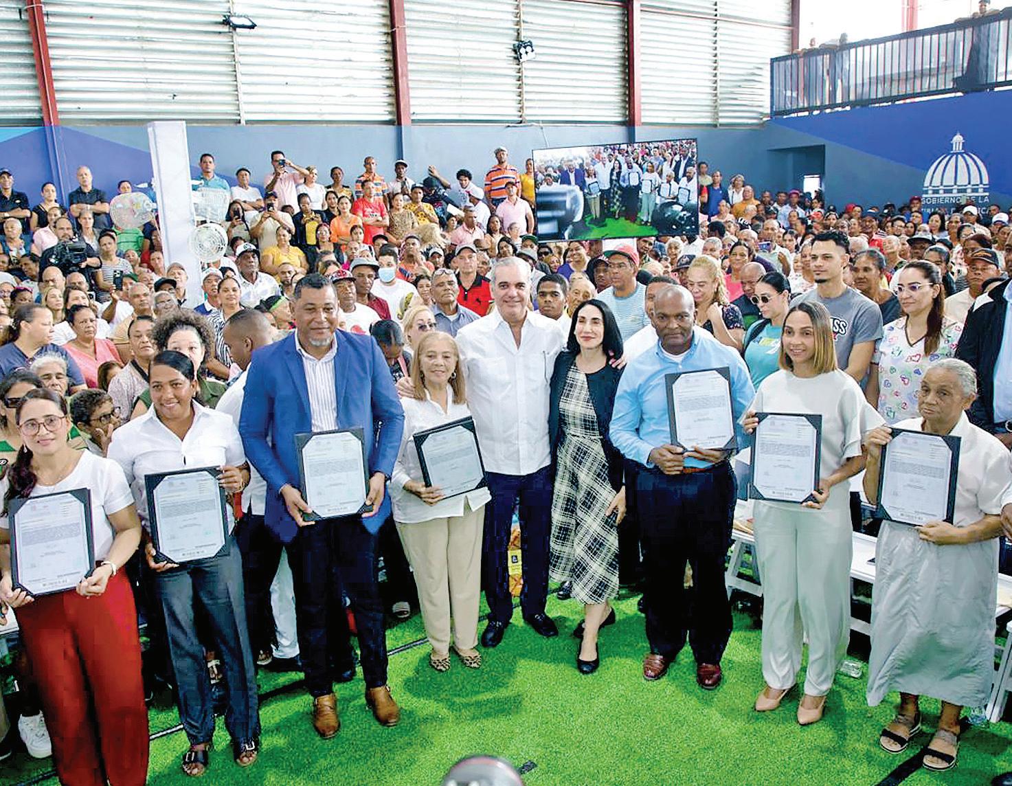 Santiago. El presidente Luis Abinader entregó en el distrito municipal de Hato del Yaque 1,025 certificados de títulos de propiedad como parte del programa de titulación y valoró que esta iniciativa es un acto de justicia social.