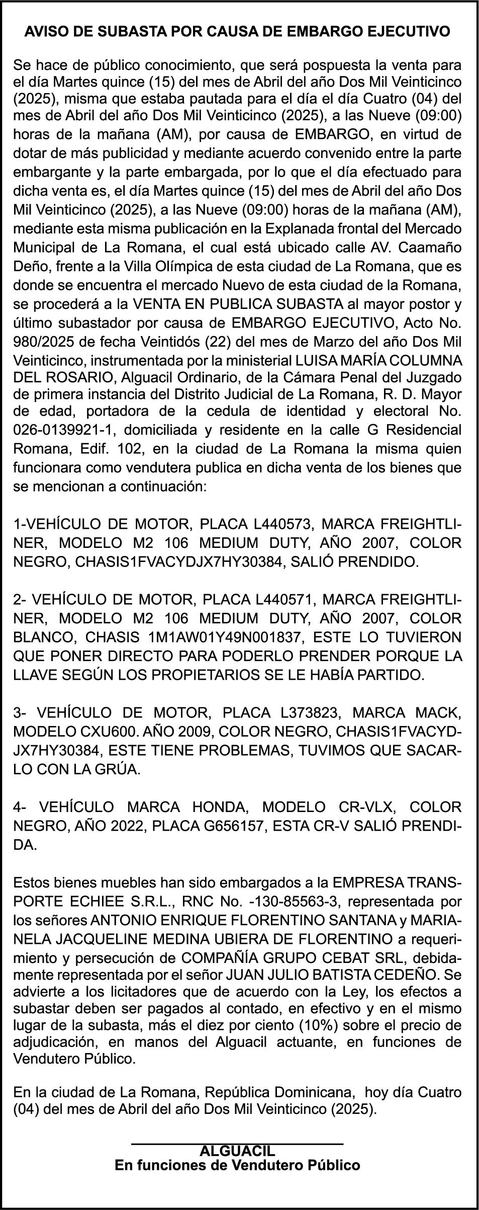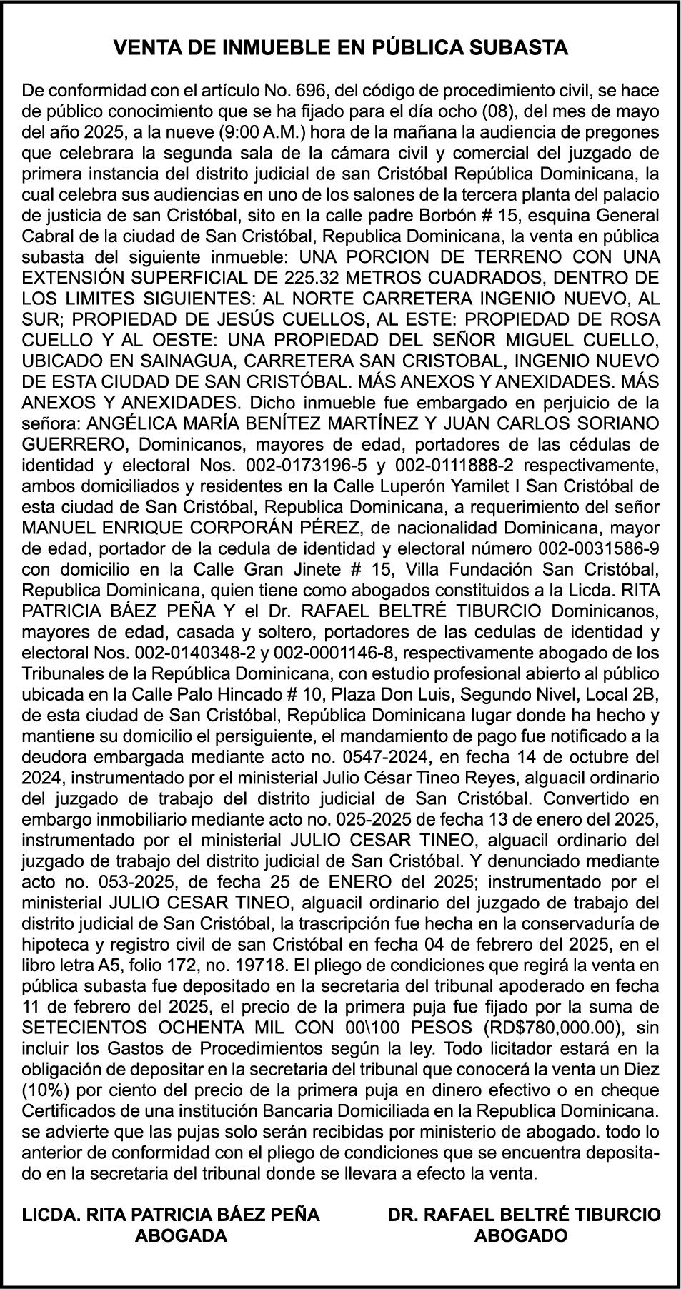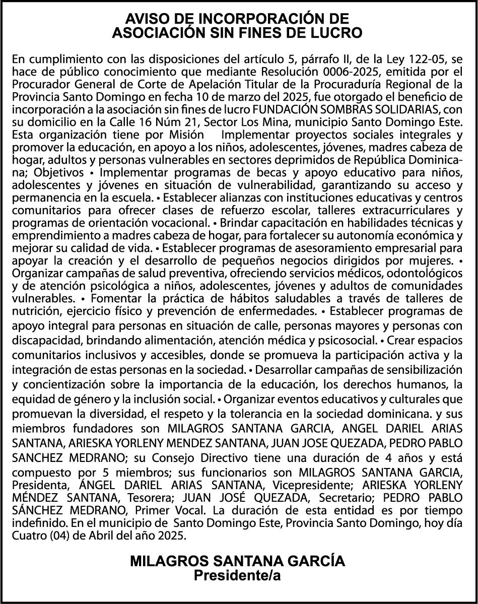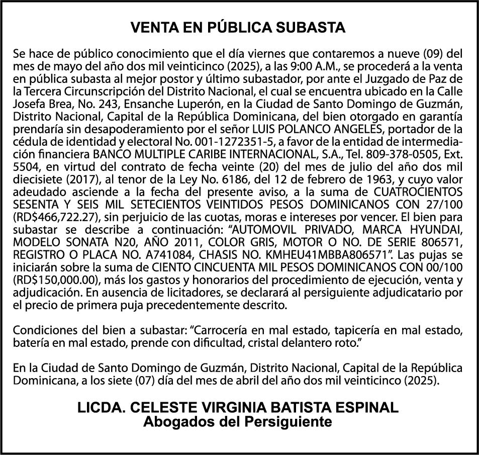 SE hace de público conocimiento la pérdida del Certificado Financiero número 834650848emitido por Banco Popular Dominicano, S. A. Banco Múltiple, a nombre de MILADY ALTAGRACIA VILLAMAN MORROBEL , portadora de la Cédula de Identidad y Electoral número 001-0211098-8 y CAROLINA ESMERALDA CUETO VILLAMAN, portadora de la Cédula de Identidad y Electoral número 001-1272979-3, certificado número 834650848, expedido en fecha 27 de junio de 2023 por el monto de (RD$600,000.00) más intereses generados a la fecha.