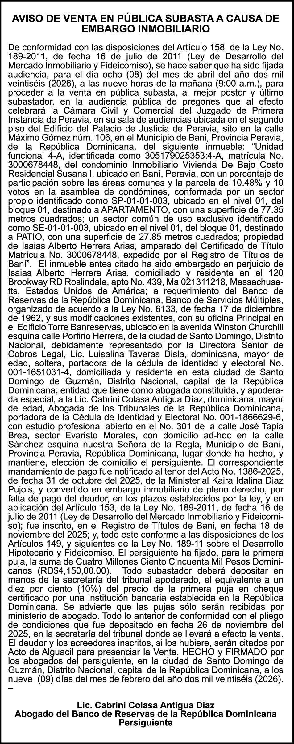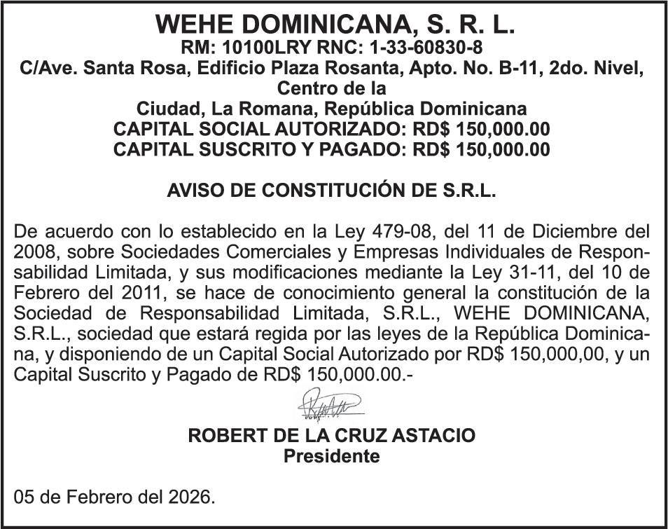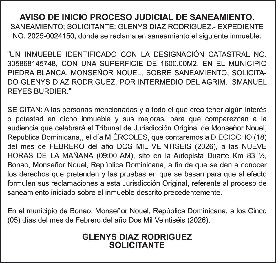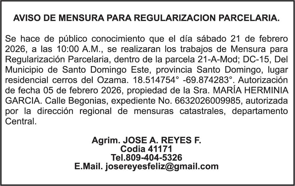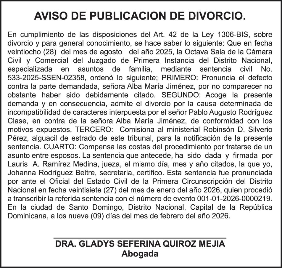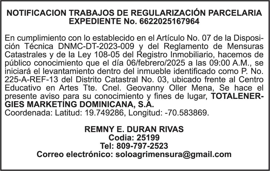 SE hace de público conocimiento la pérdida del Certificado Financiero número 842093775 emitido por Banco Popular Dominicano, S. A. Banco Múltiple, a nombre de PLINIO SAMUEL MENTOR ESPINAL, portador de la Cédula de Identidad y Electoral número 001-1458594-6 , c er t f icad o número 842093775 expedido en fecha 14 de junio de 2024, por el monto de (RD$300,000.00) más intereses generados a la fecha.