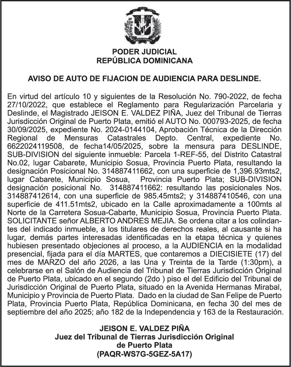 El Ministerio de Medio Ambiente y Recursos Naturales busca anular en un recurso de revisión constitucional dirigido al Tribunal Constitucional la sentencia del Tribunal Superior Administrativo,0030-1643-2025SSEN-00786, dictada por la quinta sala de la corte que reconoce parcelas privadas dentro del Parque Nacional Jaragua.