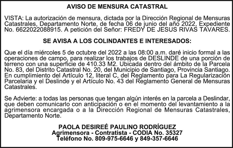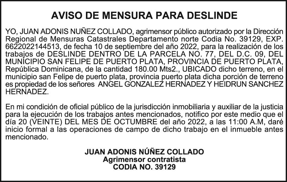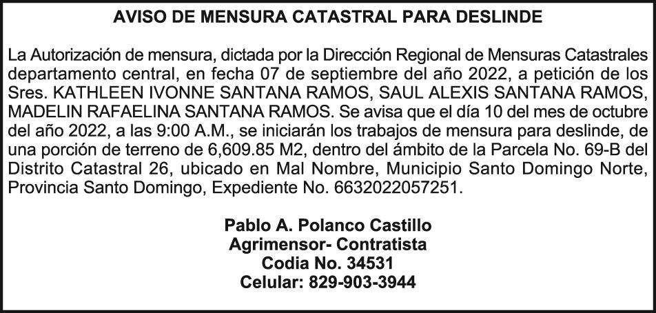 AVISO CAMBIO DE NOMBRE DE EMBARCACION Se hace de público conocimiento, que se le esta cambiando el nombre al Catamarán de recreo “SKETS”, de 48 pies de eslora, matriculada en el puerto de Samaná bajo el No. CR-S45-996SBS, propiedad de los señores KARVOL KARLOS MACKEY