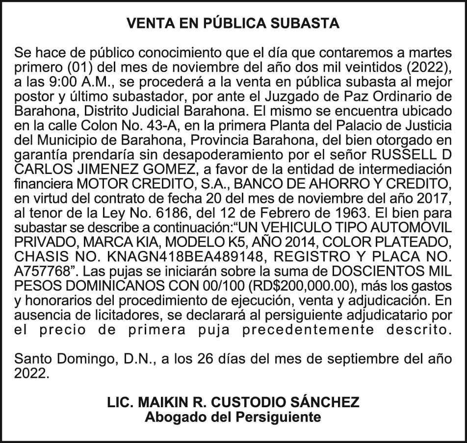 . 5elCaribe, Martes 27 De septieMbre De 2022 LEGALES