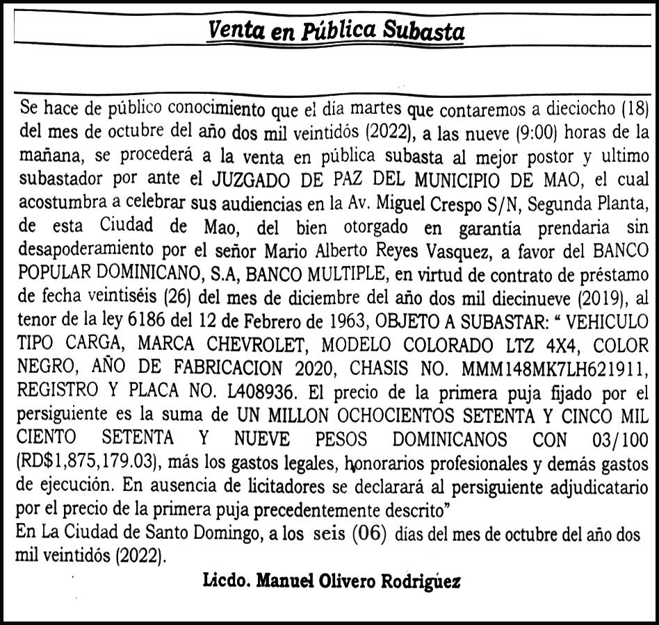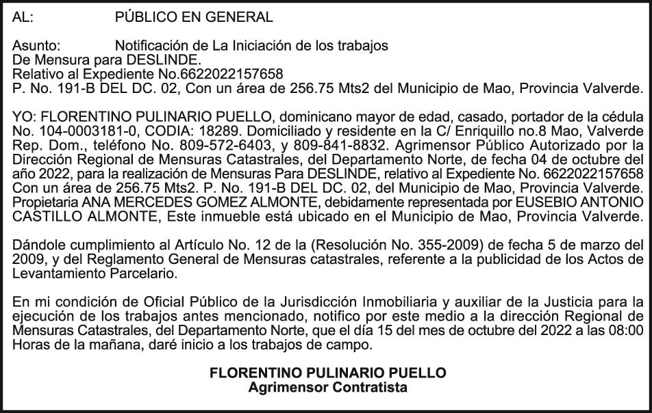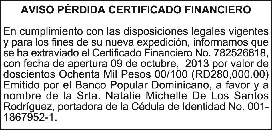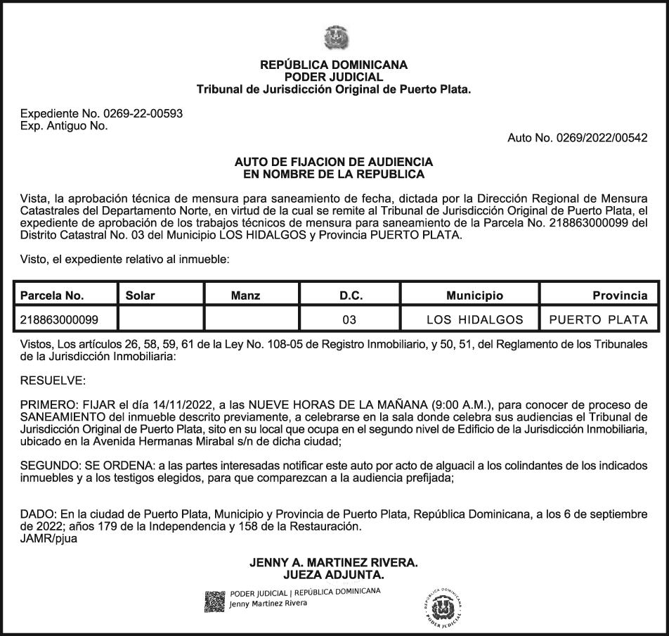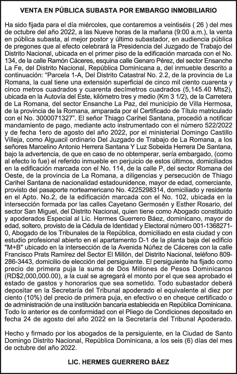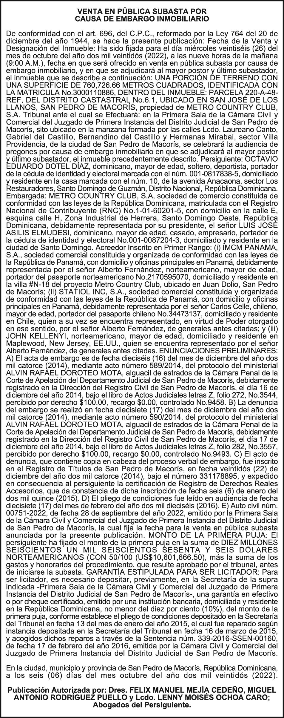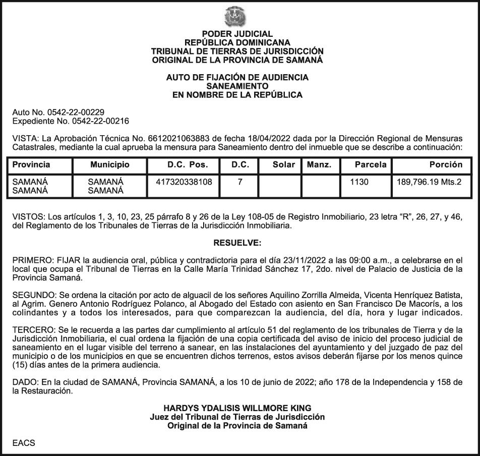 PESOS DOMINICANOS (RD$72,600.00) PROPIEDAD DE LA PLAZA DEBORA