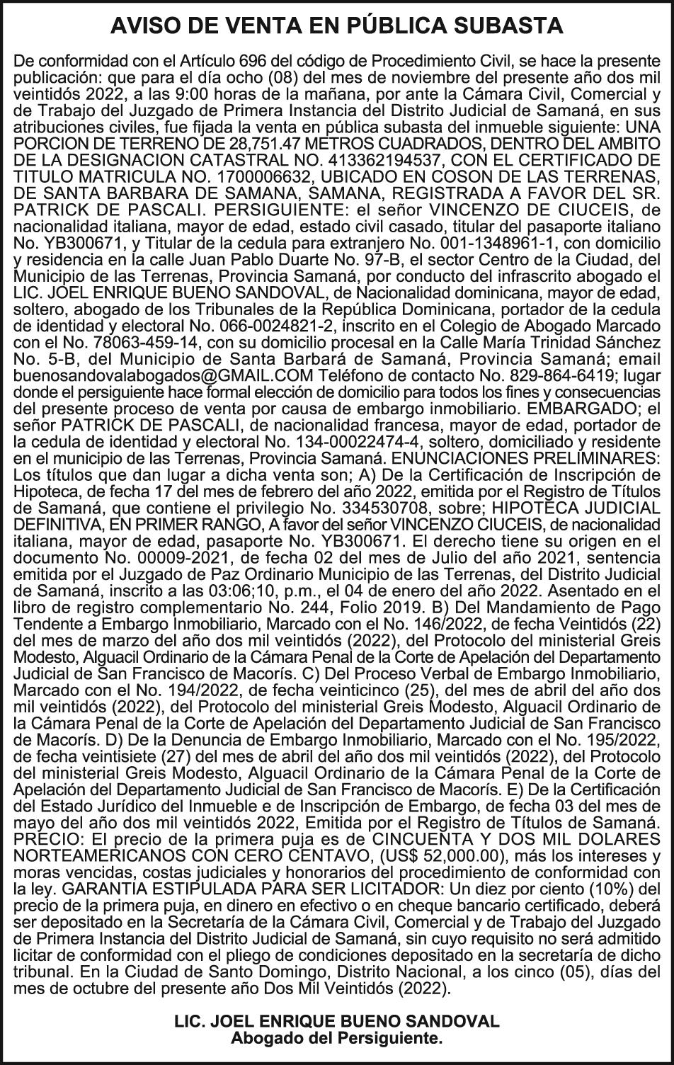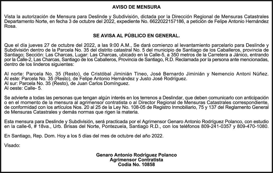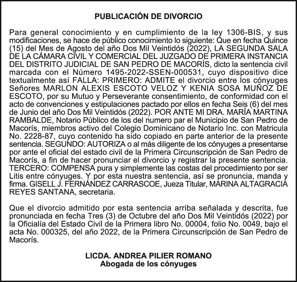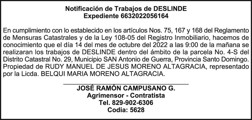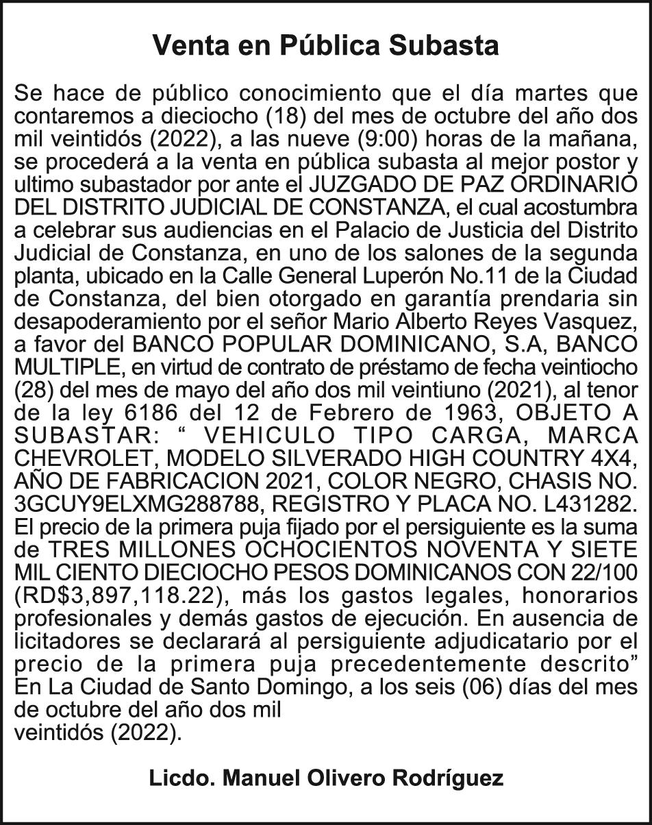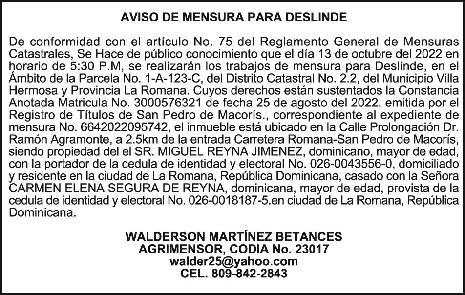 PESOS DOMINICANOS (RD$72,600.00) PROPIEDAD DE LA PLAZA DEBORA