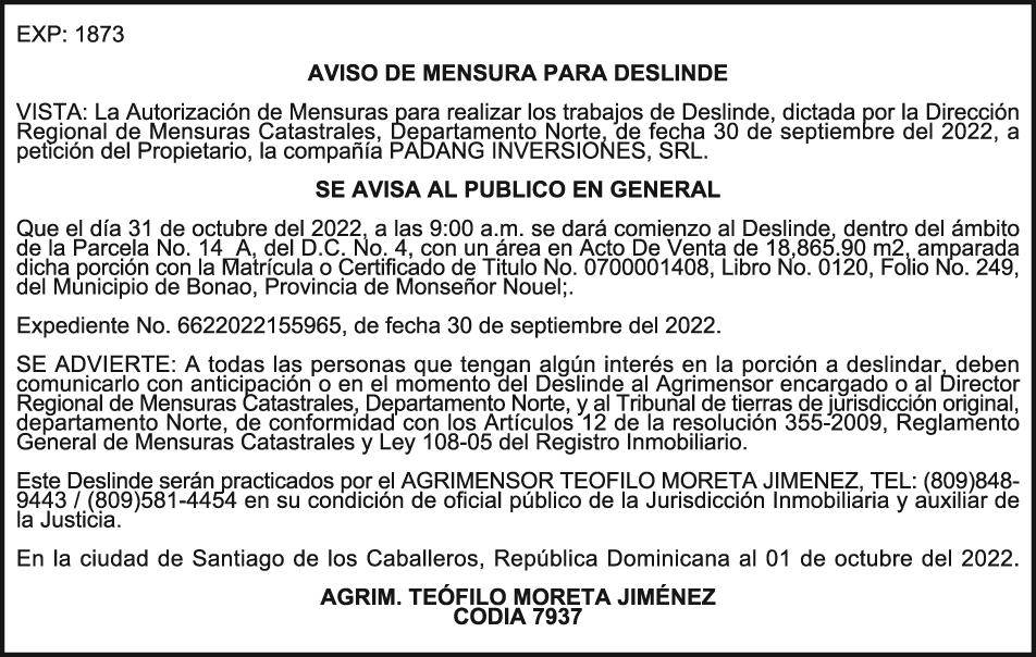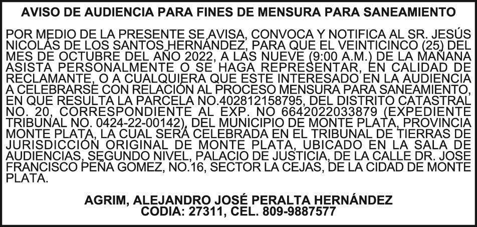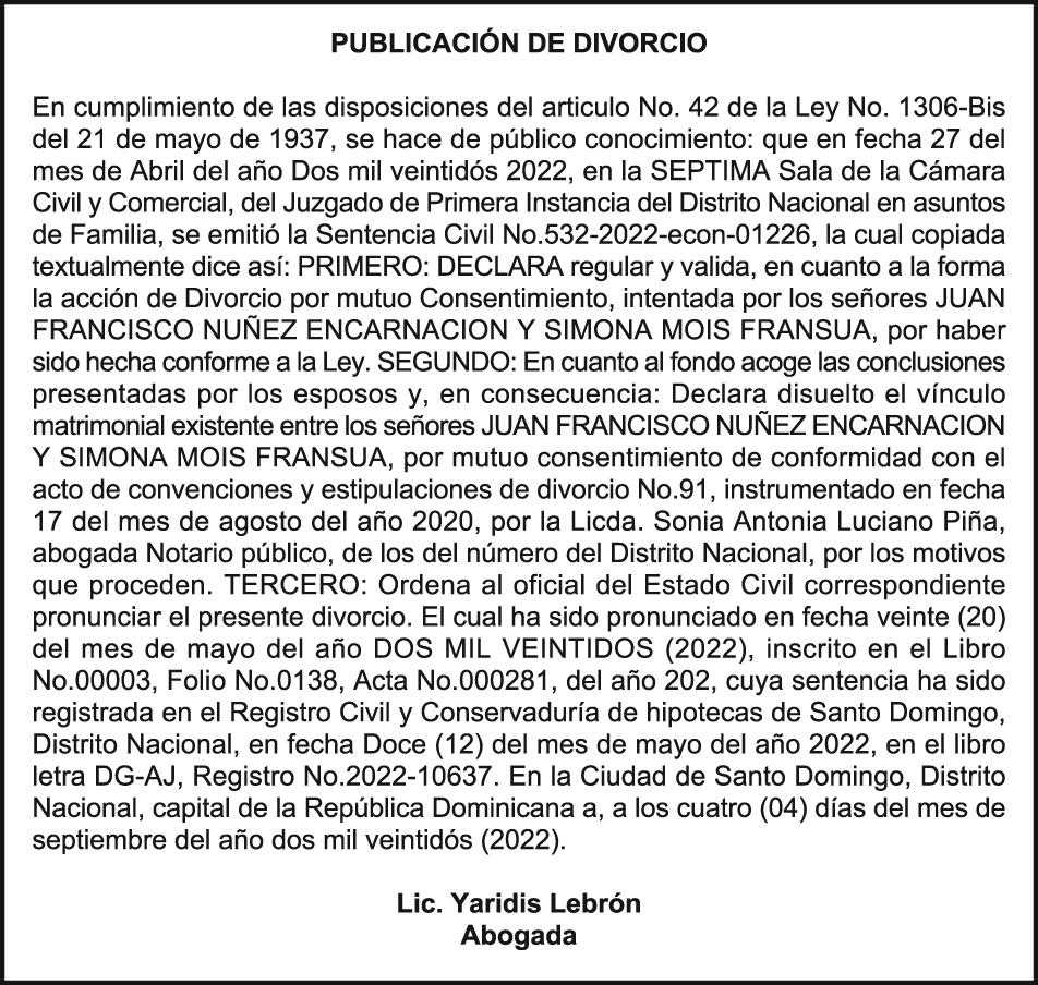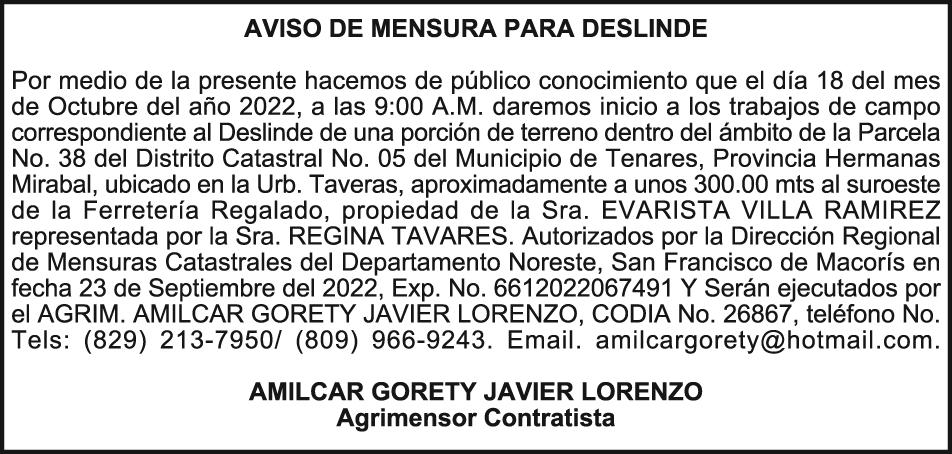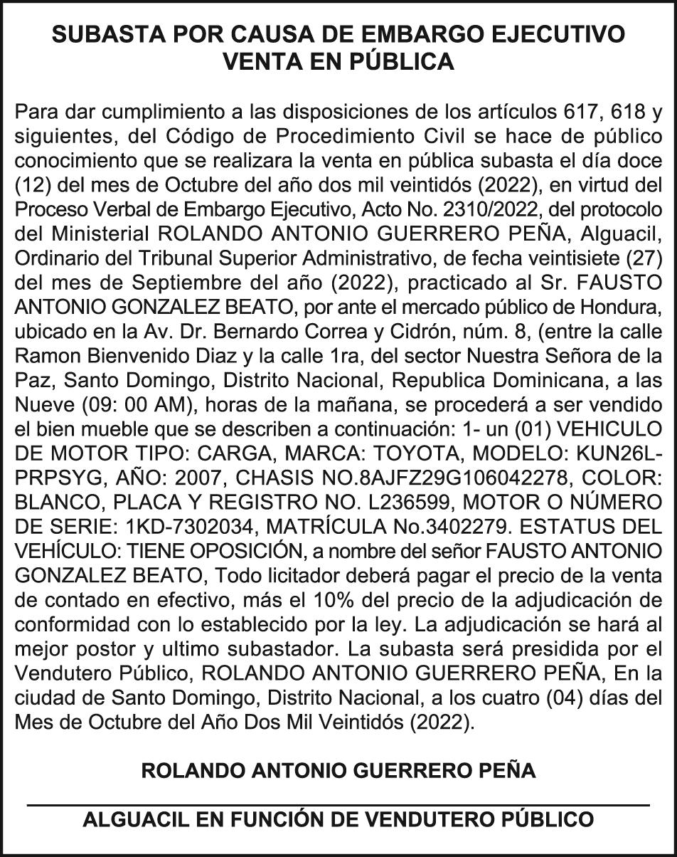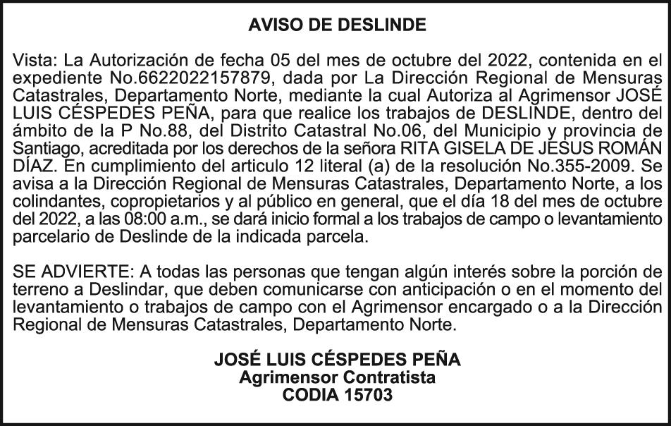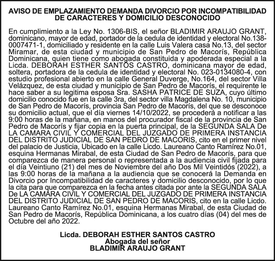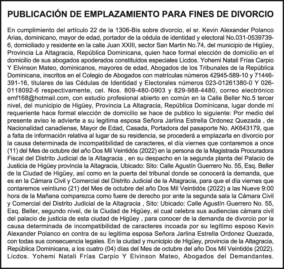 PESOS DOMINICANOS (RD$72,600.00) PROPIEDAD DE LA PLAZA DEBORA