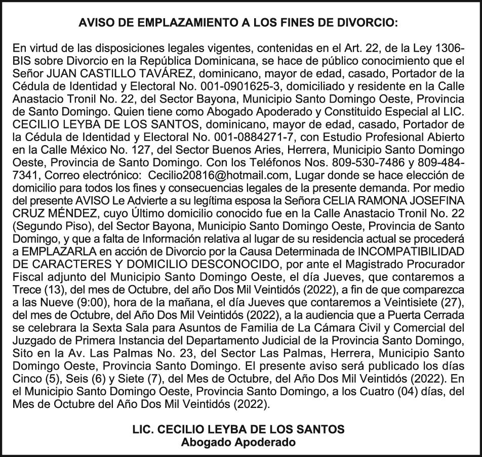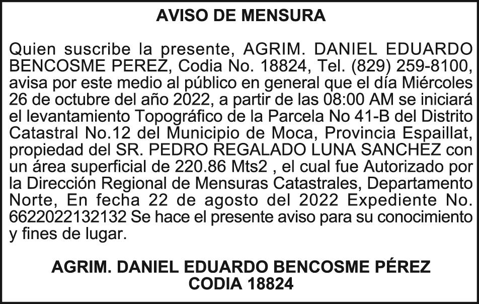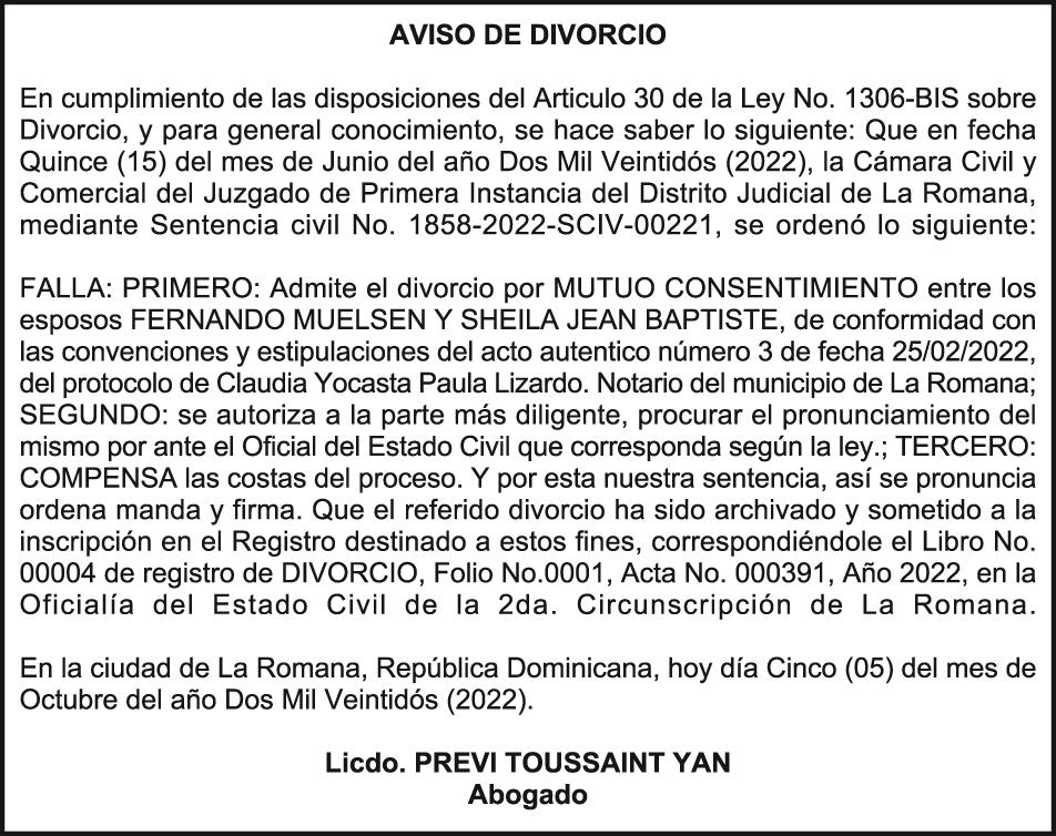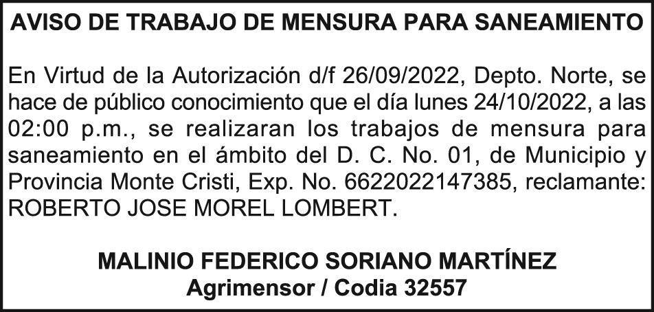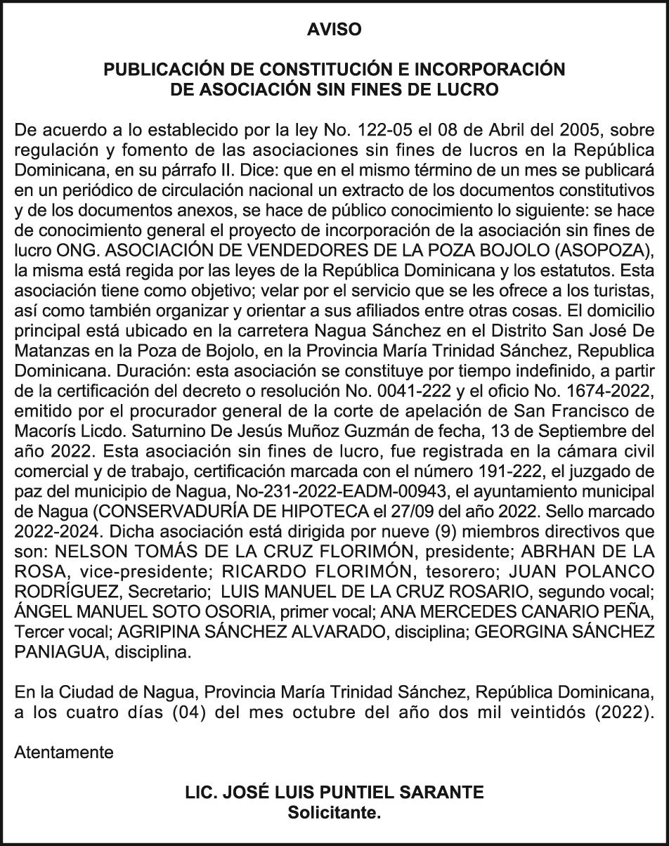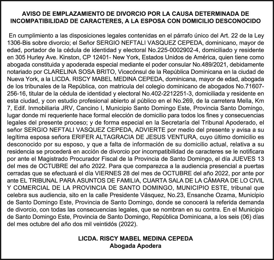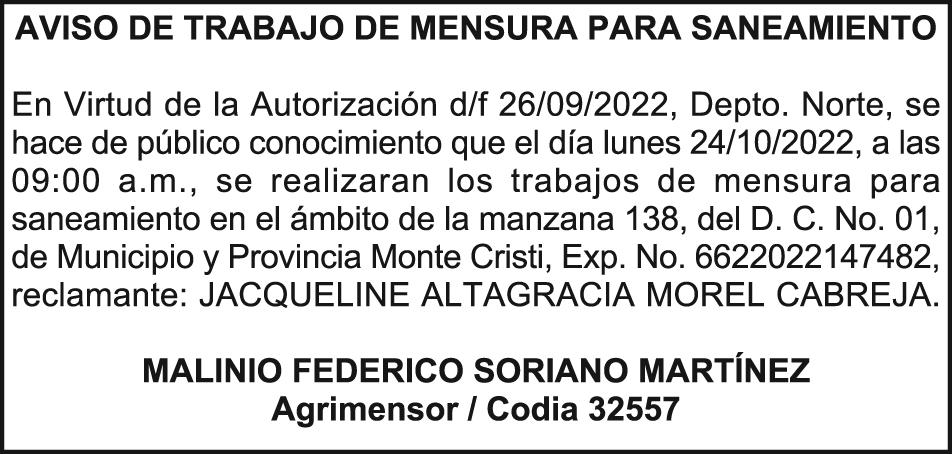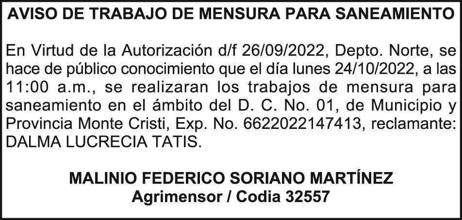 PESOS DOMINICANOS (RD$72,600.00) PROPIEDAD DE LA PLAZA DEBORA