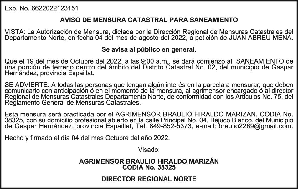 PERDIDA DE PLACA NO. L018657 DEL VEHICULO NISSAN COLOR VERDE AÑO 2004 CHASIS 3N6GD12SXZK005362 ANOMBRE DE MIZRAIM ABRAHAM DE LOS SANTOS PERDOMO.