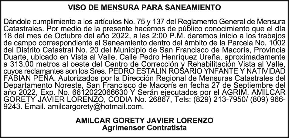 PROYECTO. El senador por la provincia San Juan, Félix Bautista, sometió ante el Senado de la República un proyecto de ley que declara las zonas de potencial minero de la Cordillera Central en esa provincia como Reserva Natural Romero, que abarca 31 comunidades, con un área de 25,722.65 hectáreas.