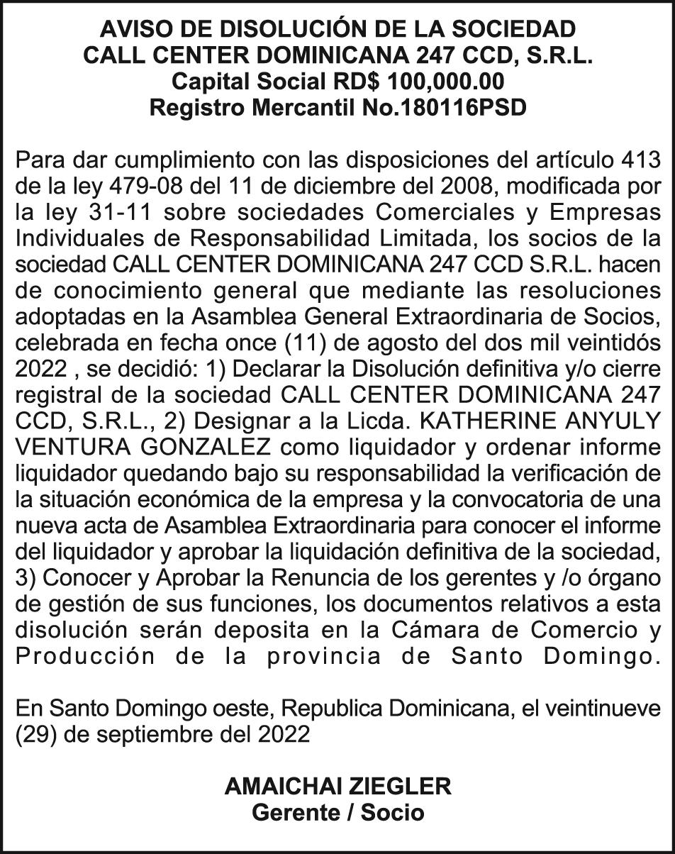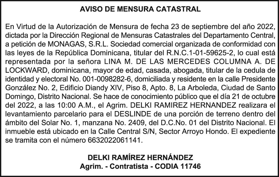 POR SU GERENTE LA Sra. LUCRECIA RAMIREZ DE TAVAREZ Ced.024-00111205