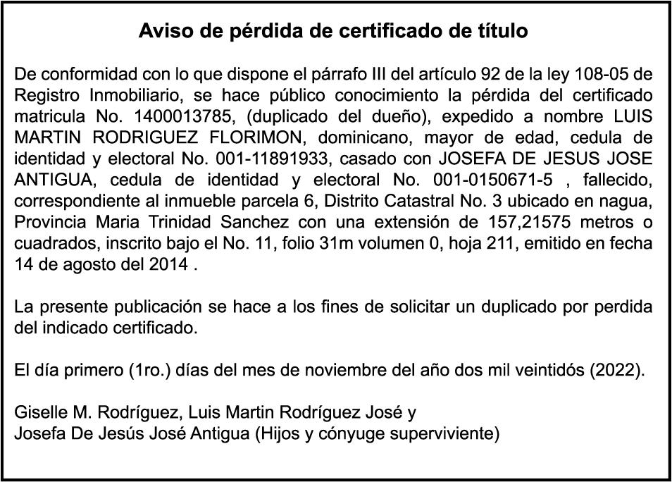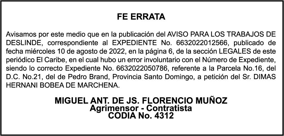 . 13elCaribe, Martes 1 De NovieMbre De 2022 LEGALES