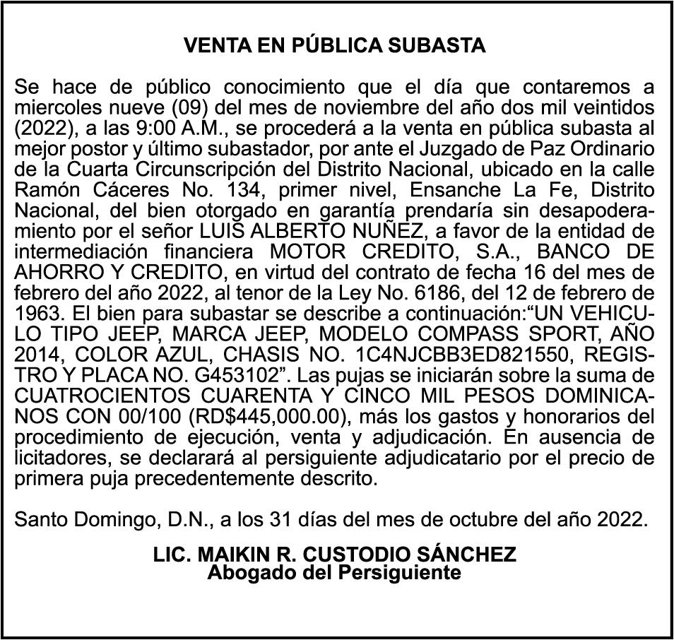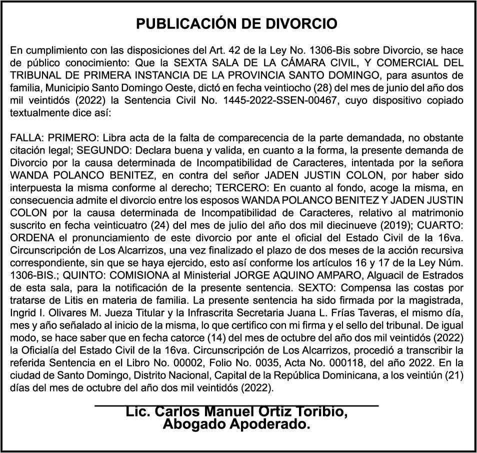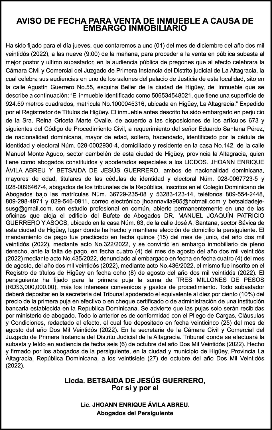 . 9elCaribe, Martes 1 De NovieMbre De 2022 LEGALES