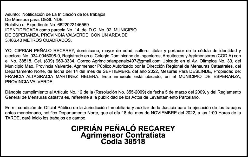 14 elCaribe, Martes 1 De NovieMbre De 2022LEGALES