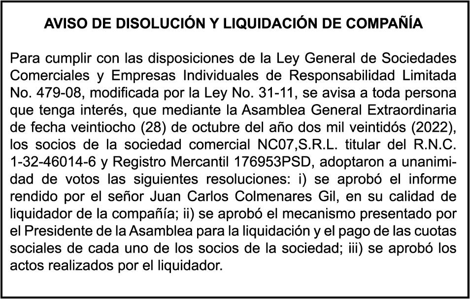 . 7elCaribe, Martes 1 De NovieMbre De 2022 LEGALES