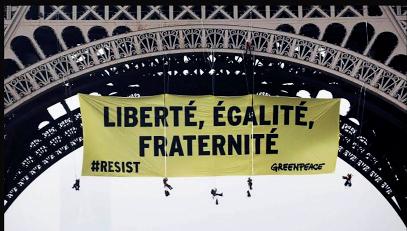 Los pioneros modernos de “golpe publicitario” fueron los ambientalistas de Greenpeace que sorprendían poniendo una enorme bandera en la Torre Eiffel o algún letrero contra el partido nazi de Jean Marie Le Pen, “Le Front National” que ahora hereda Marine, su hija. Simplemente decía RESIST, haciendo alusión a La Resistencia de los años 40. ¡Genial!