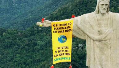 •En el 2006, en Brasil, colocaron una banderola en el brazo derecho de Cristo, sobre la protección de la biodiversidad.