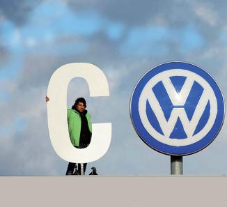 •En una fábrica de automóviles Volkswagen, se subieron al edificio y al logo le pusieron una C por delante y un 2 al lado derecho para que se leyera CO2.