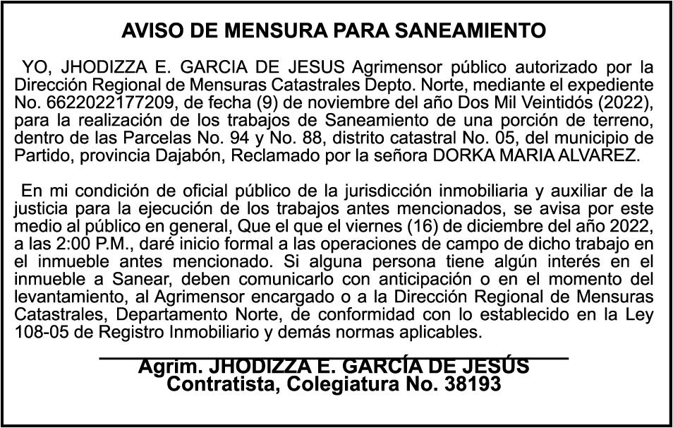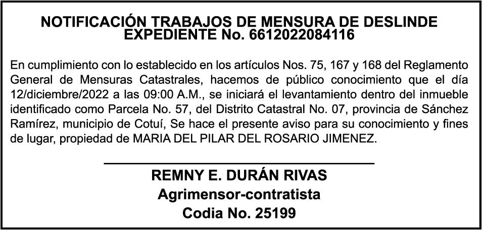 AVISO DE REGULARIZACION DE SOLAR No. 13-A, manzana No.124, ubicado en la calle FRANCISCO RICHIEZ, No. 105-A, de la ciudad de La Romana, Rep. Dom., no se encuentra a nombre de ninguna persona e institución.