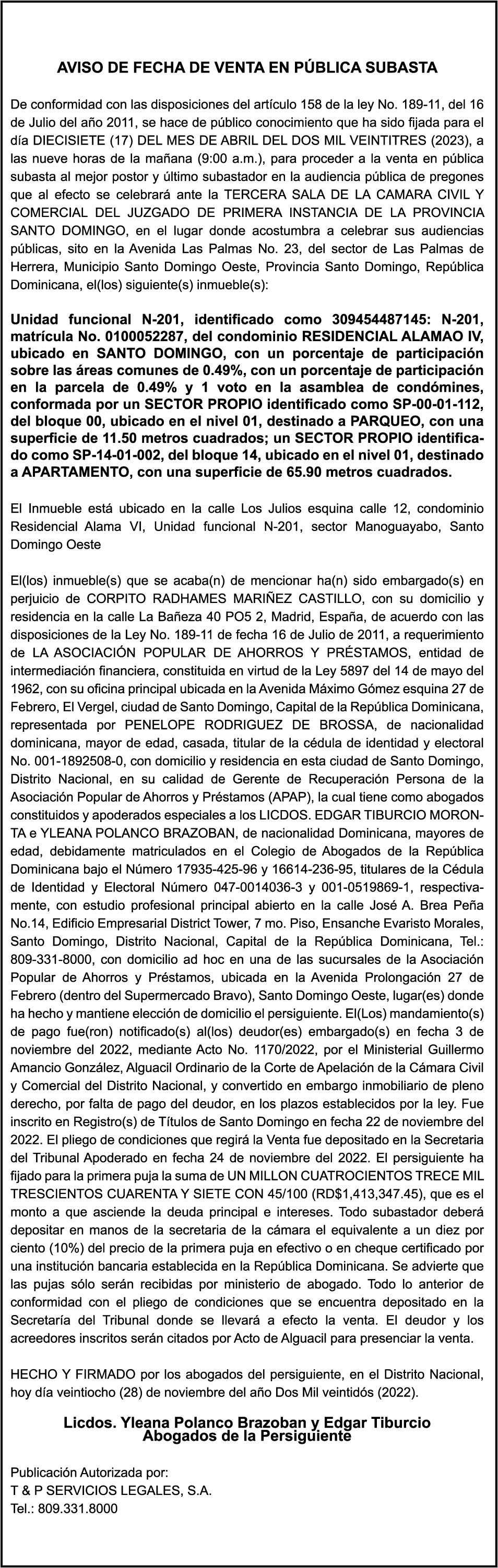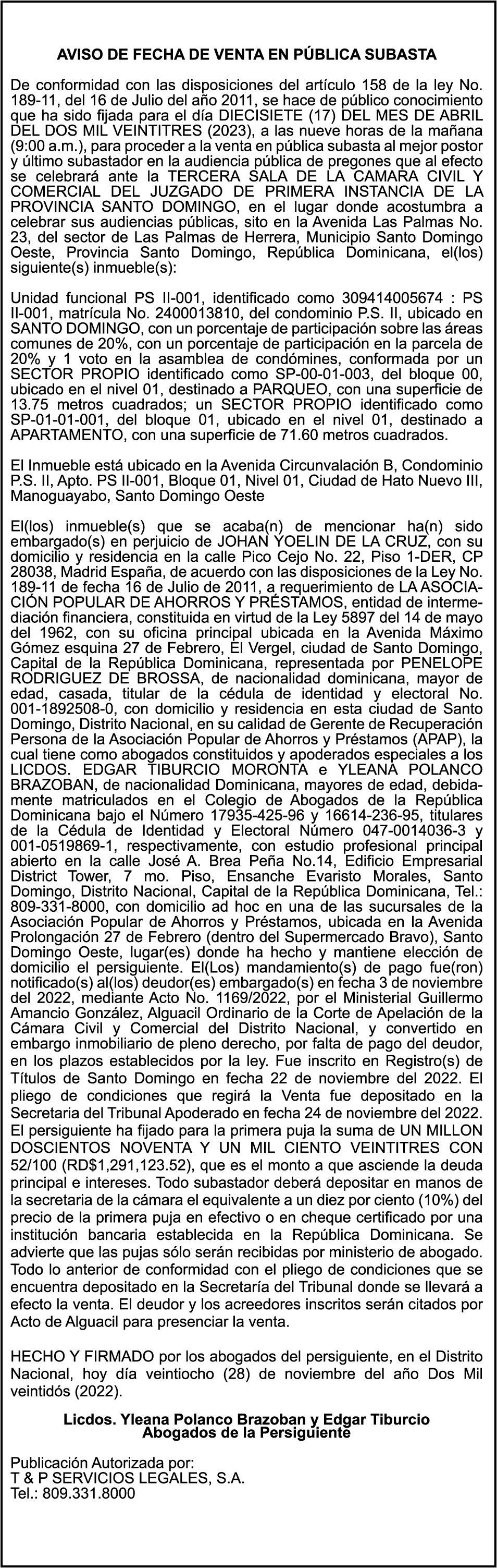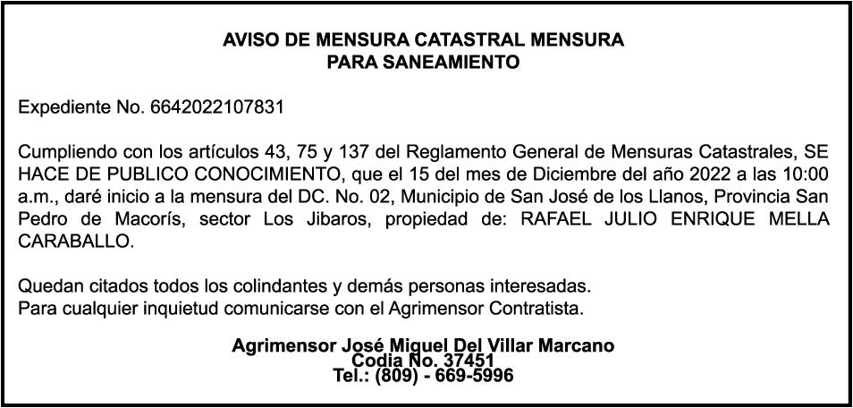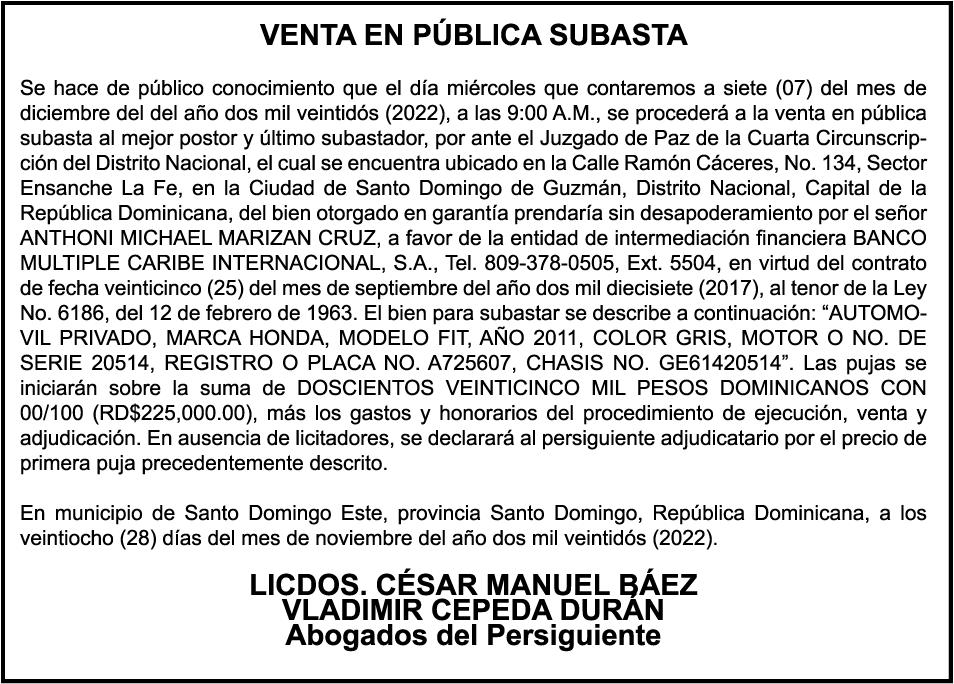 . 7 elCaribe, Lunes 28 De noviembre De 2022 LEGALES