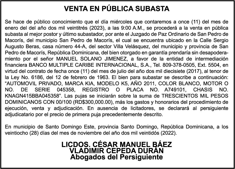 . 5 elCaribe, Lunes 28 De noviembre De 2022 LEGALES