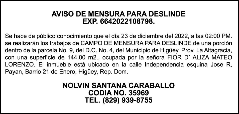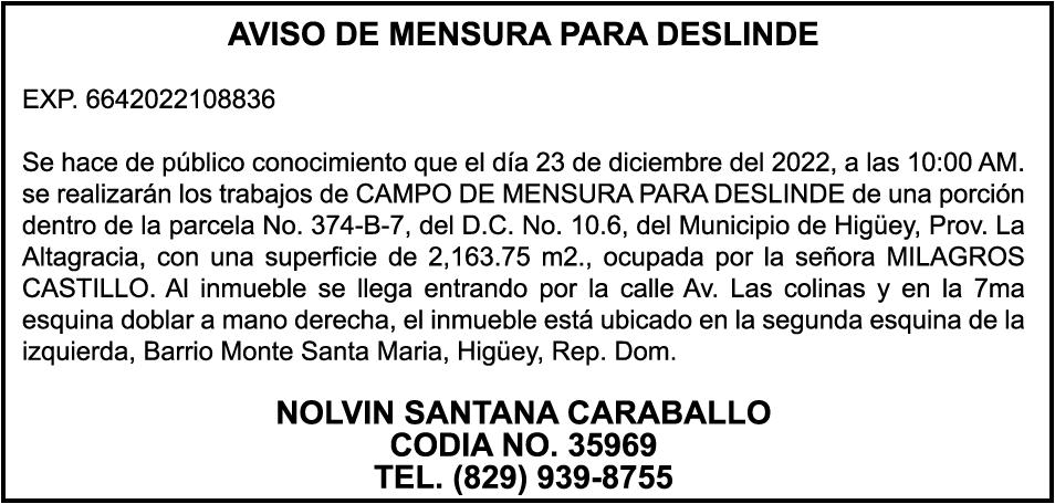. 7 elCaribe, Lunes 19 De Diciembre De 2022 LEGALES