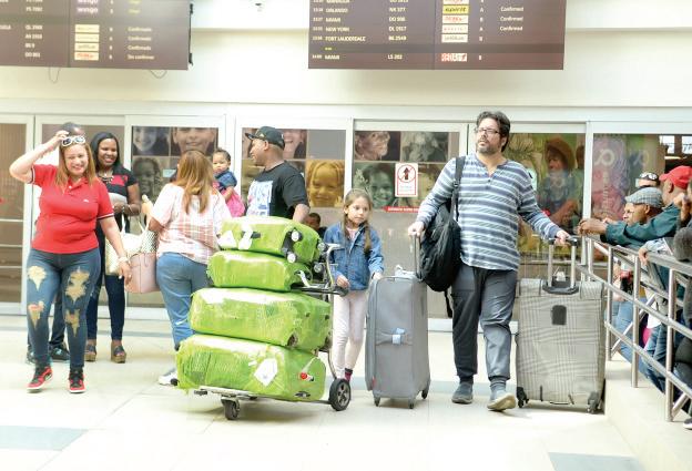 en el exterior y sus familiares se convierten en emotivas escenas que se observan con mayor frecuencia en esta época en el Aeropuerto Internacional de Las Américas, donde hay expectativas de que se rompa récord de llegadas. P. 10