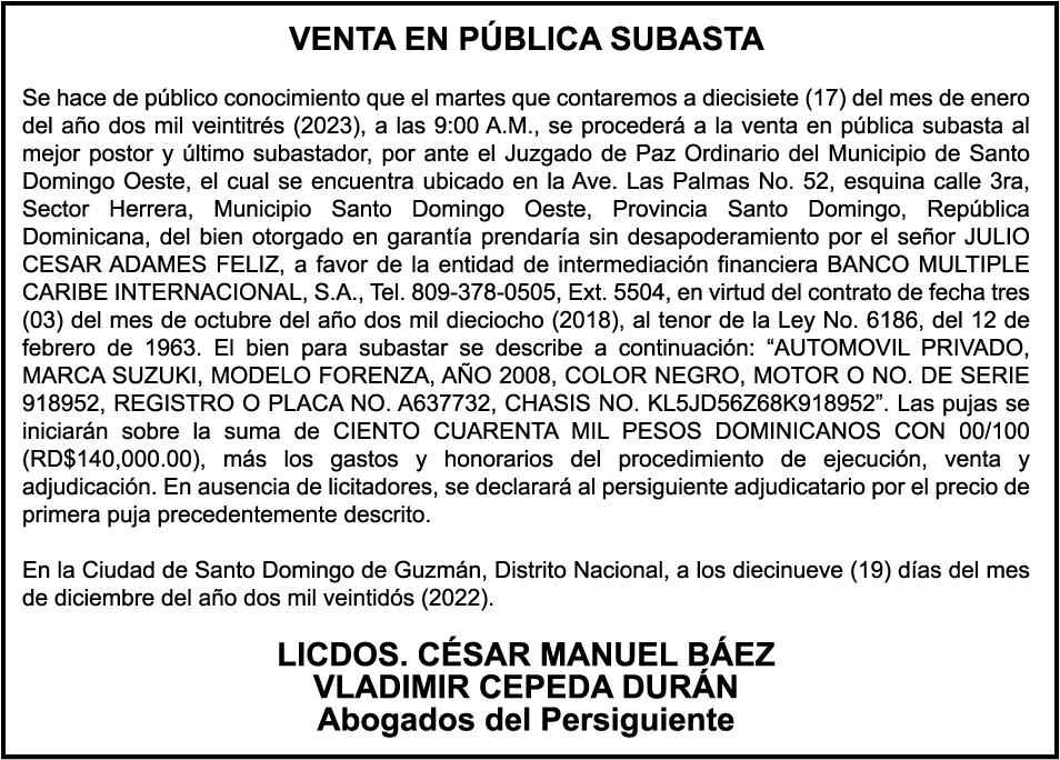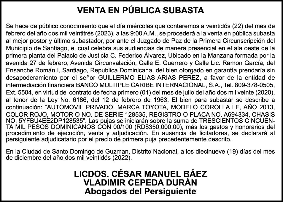 . 3 elCaribe, Lunes 19 De Diciembre De 2022 LEGALES