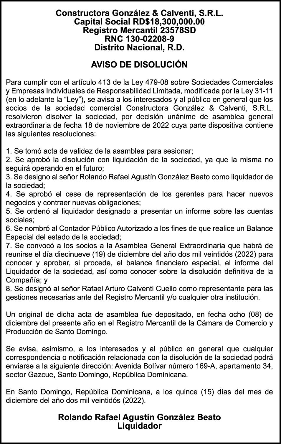 8. elCaribe, Lunes 19 De Diciembre De 2022 LEGALES