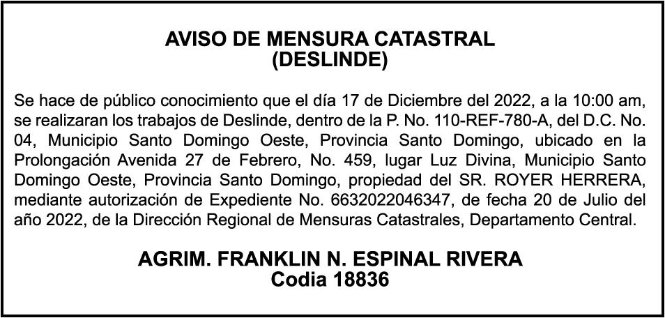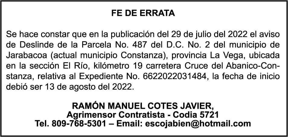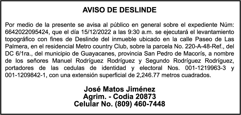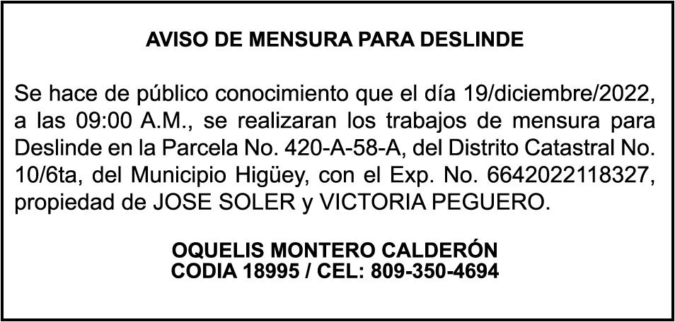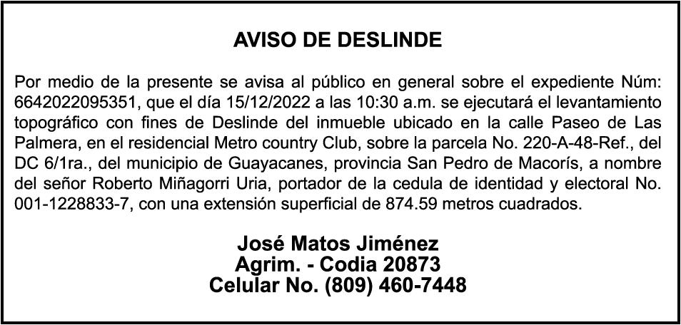 . 7 elCaribe, Martes 6 De DicieMbre De 2022 LEGALES