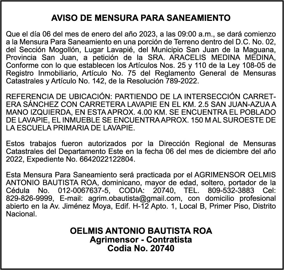 LA CRUZSi un partido va a la JCE, los otros también van, si sale una encuesta que dice una cosa, los otros tienen la suya con sus propios números, bien acomodados a sus intereses. Si uno sale publicado y el otro no, viene reclamo y así en cada cosa y día tras día.
