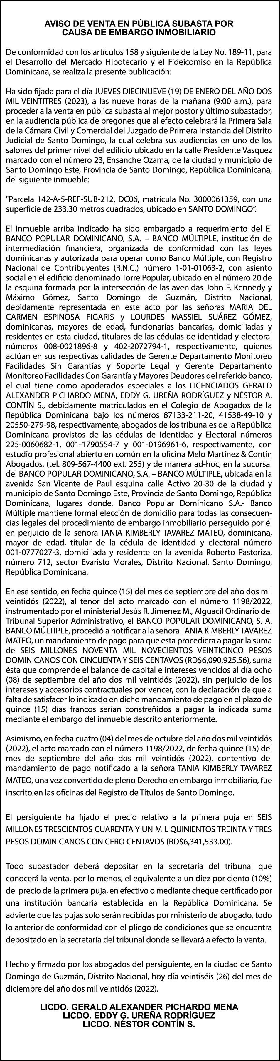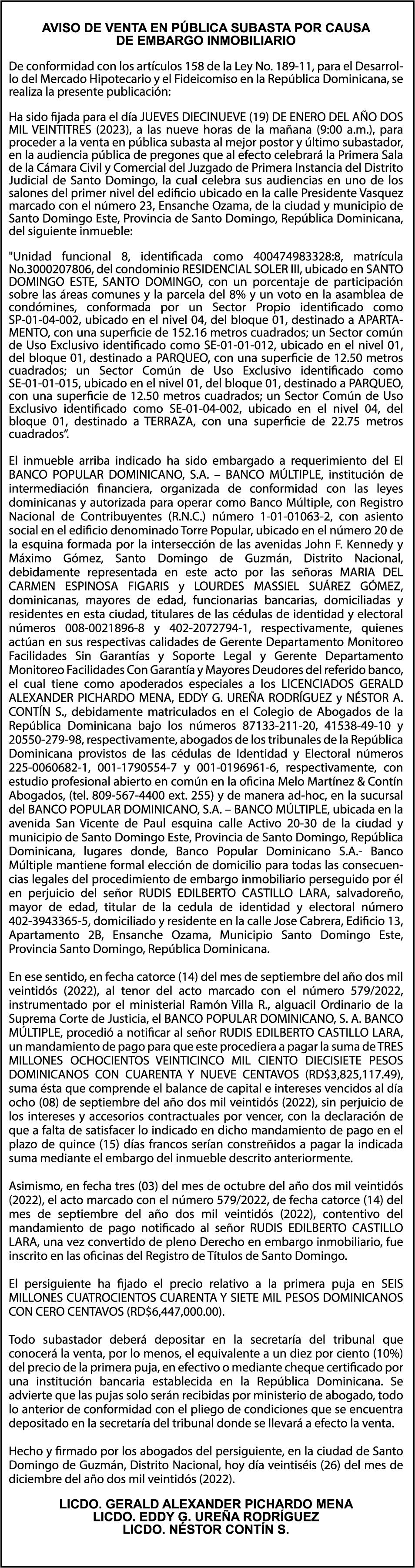 . 7 elCaribe, Lunes 26 De Diciembre De 2022 LEGALES