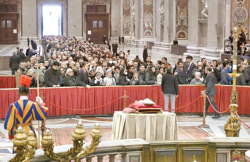 Iglesia: Una fila interminable de fieles atravesó ayer la basílica de San Pedro para despedir al papa emérito Benedicto XVI, que murió el pasado sábado.