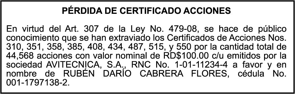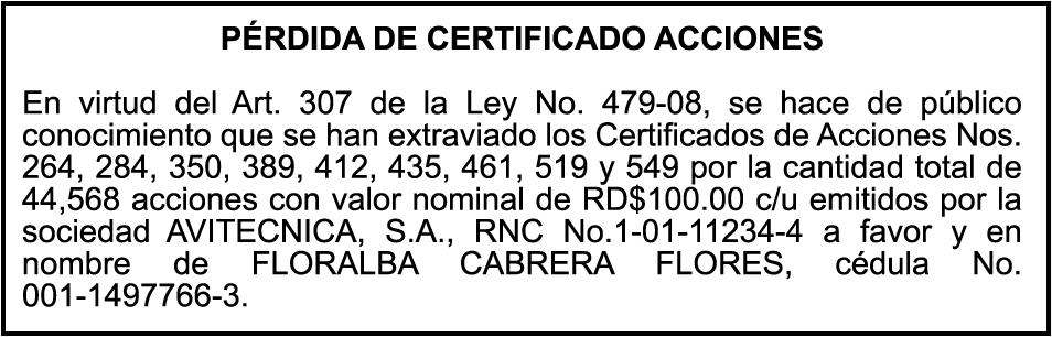 PERDIDA DE MATRICULA: Del Vehiculo, Placa U005979, Chasis 8ZK10127, Color AMARILLO, AñO 1981, Marca MITSUBISHI, Modelo FG20, a nombre de AUTOREPUESTO CARLOS C POR A, RNC102627681