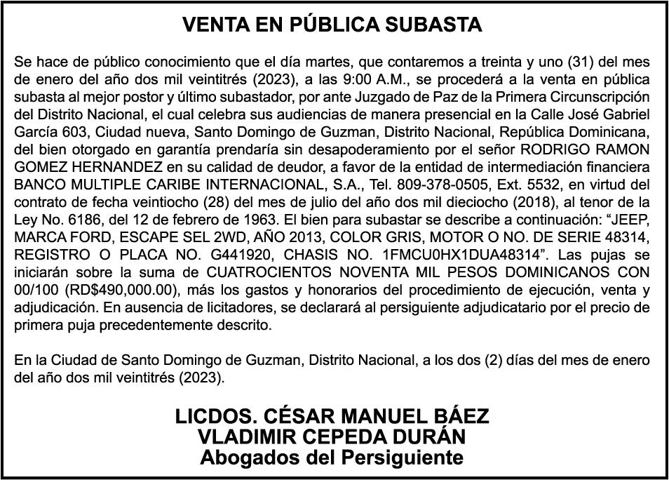 4. elCaribe, Martes 3 De enero De 2023 LEGALES