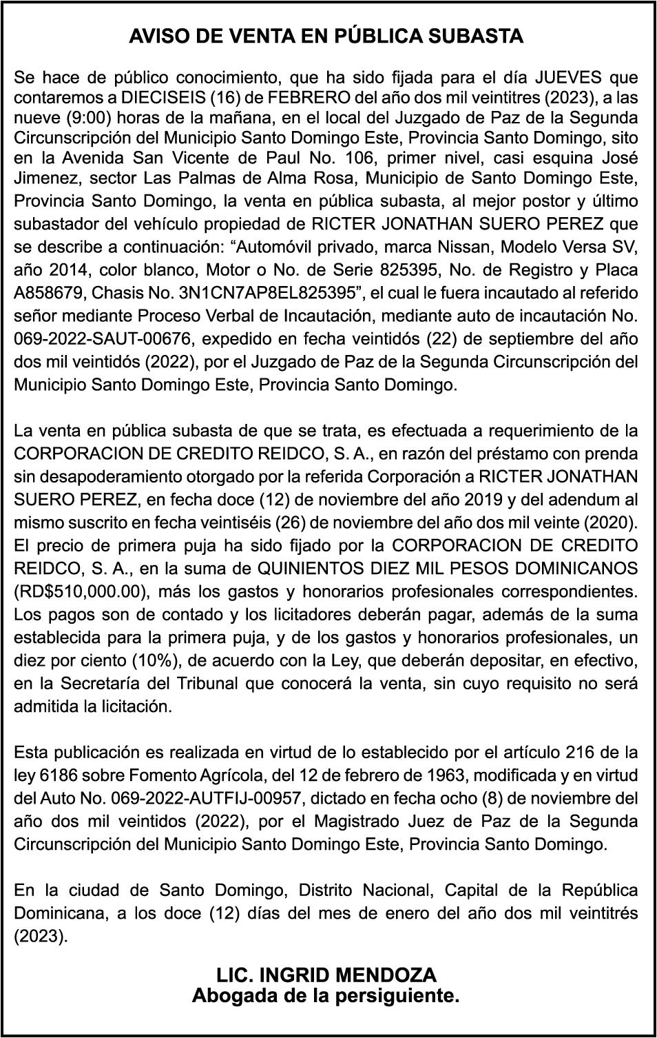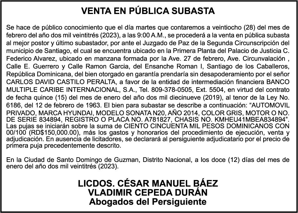 4. elCaribe, Jueves 12 De enero De 2023 LEGALES