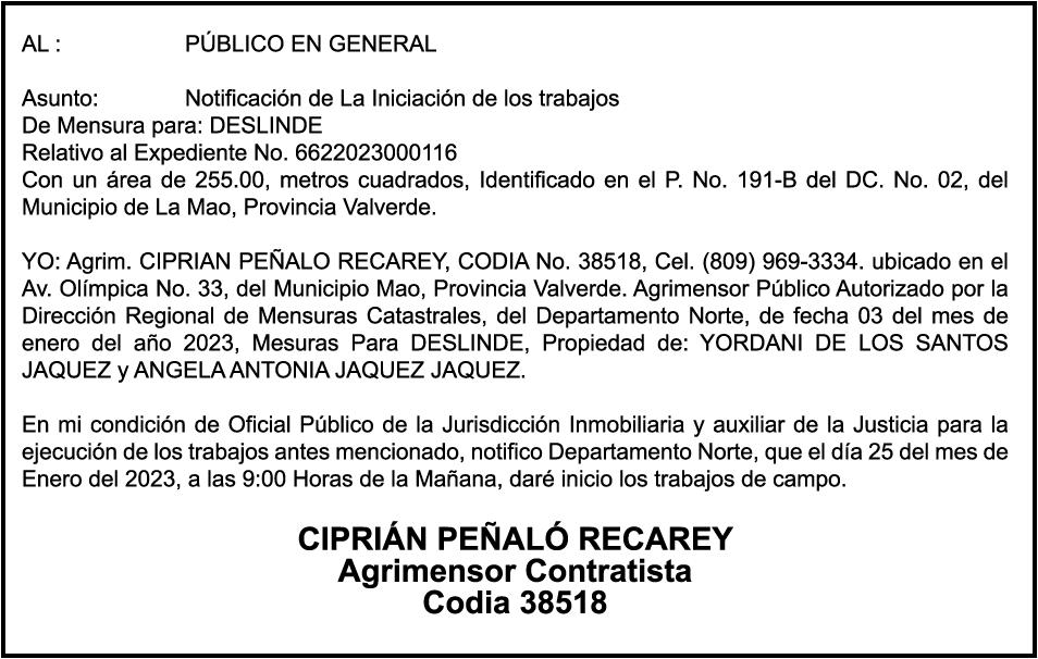 . 7 elCaribe, Jueves 12 De enero De 2023 LEGALES