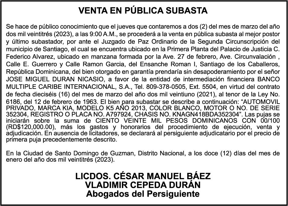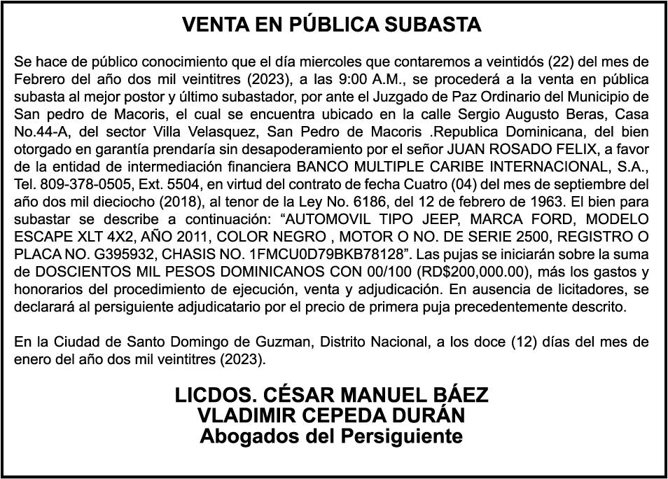 8. elCaribe, Jueves 12 De enero De 2023 LEGALES
