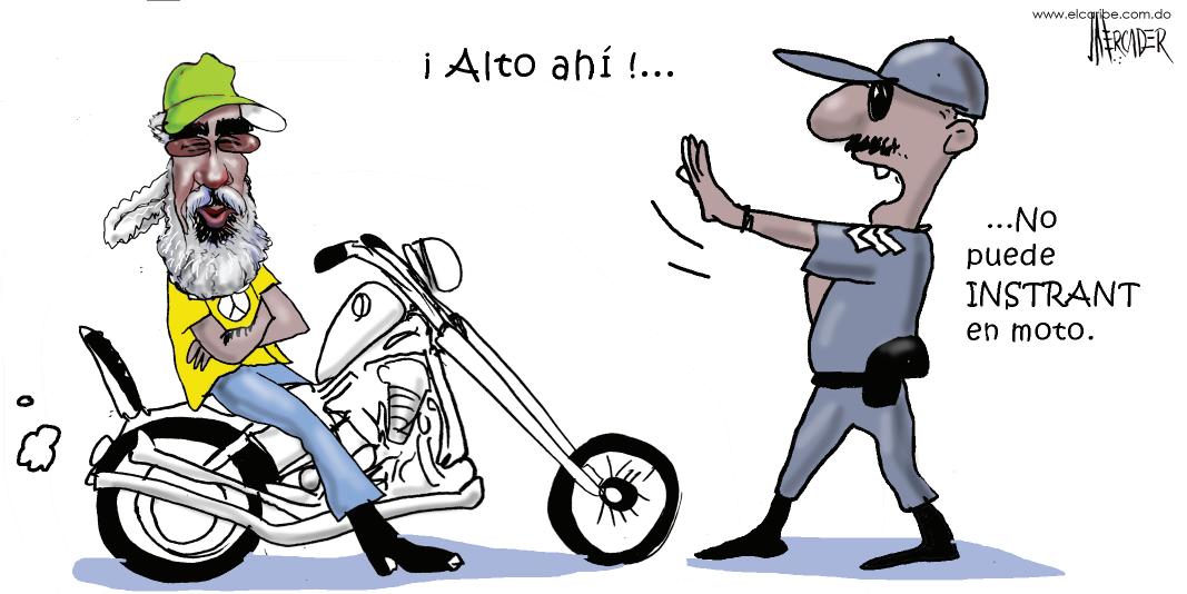 A PROPÓSITO DE LA PRETENSIÓN del Intrant de prohibir, por resolución, con todo y que la ley dice lo contrario, que dos personas transiten en motocicletas a determinadas horas, el pastor Ezequiel Molina recuerda que en 1968 Joaquín Balaguer impuso una medida similar por el mismo motivo que quieren hacerlo ahora, la delincuencia. Evoca que entonces tenía una motocicleta Vespa y que la policía de tránsito lo detenía, hasta que le llegó una idea ingeniosa, y le adaptó una segunda goma en la parte trasera con lo que tenía tres, y hasta un canasto le agregó en el que transportaba a su hijo del mismo nombre. ¿Cuál fue el ingenio? Que la prohibición era, específicamente, para vehículos de dos ruedas y su Vespa ya tenía tres.