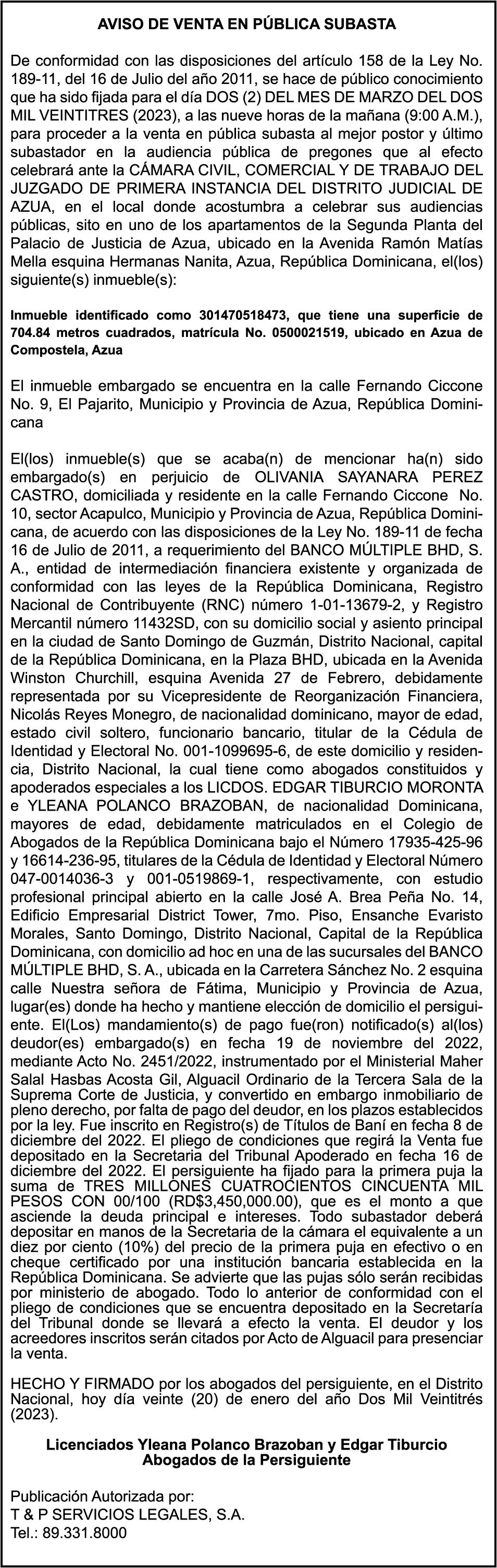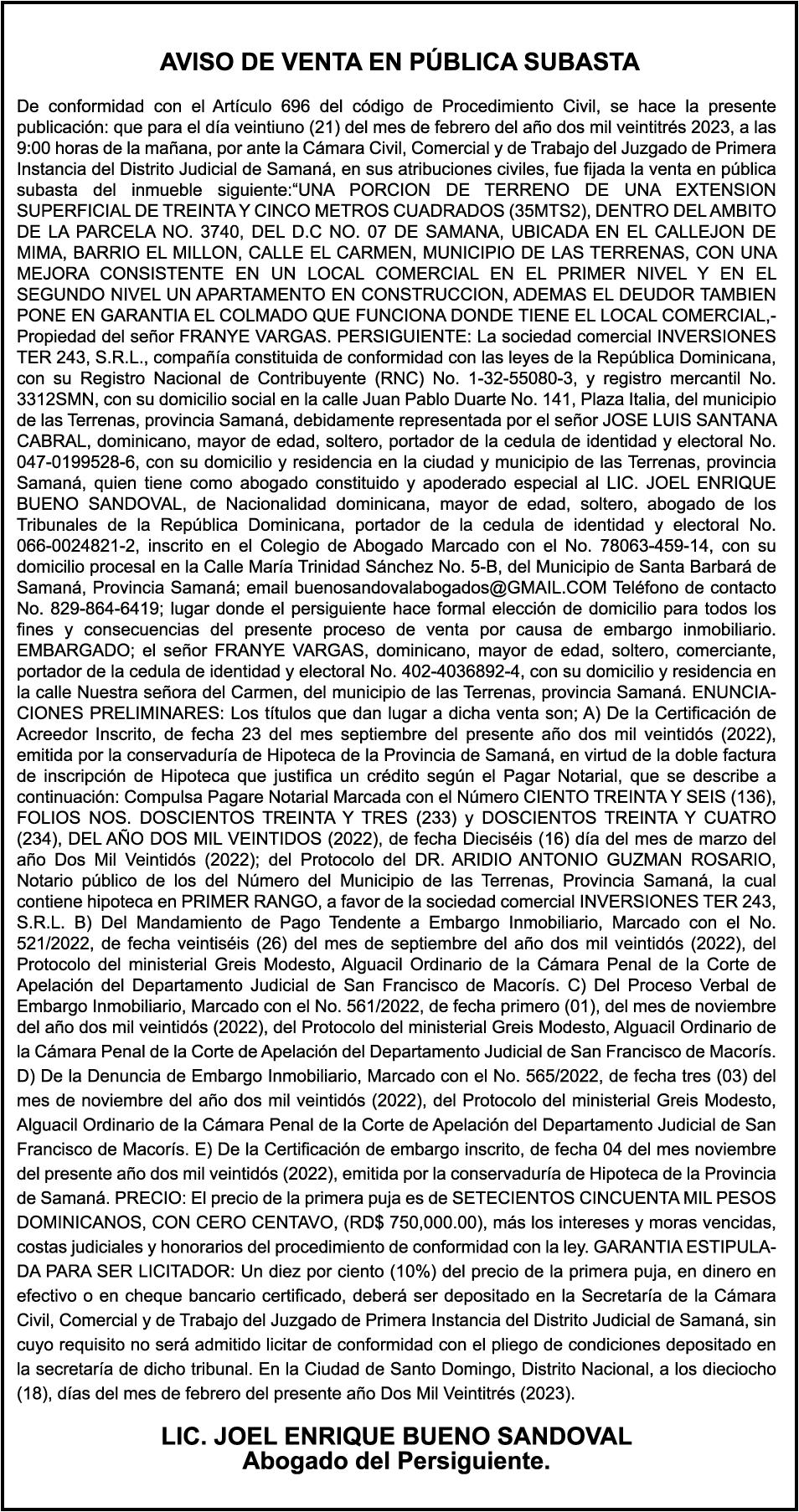 . 7 elCaribe, Viernes 20 De enero De 2023 LEGALES