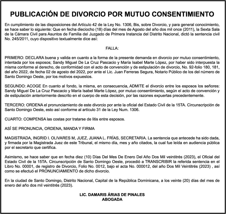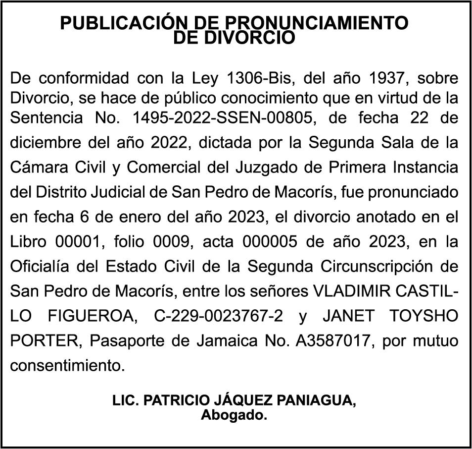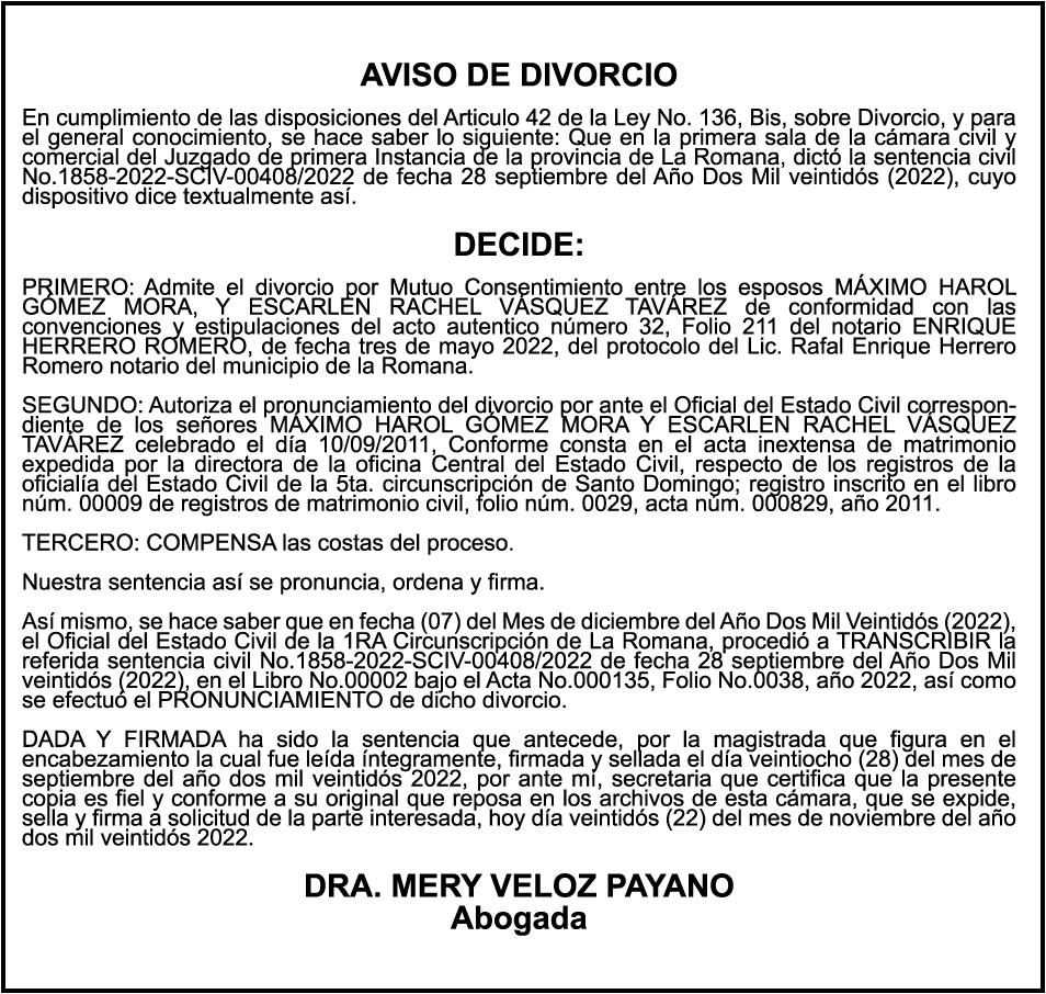 Esta disposición está contenida en el artículo transitorio de la Ley 4-23 Orgánica de los Actos del Estado Civil recientemente aprobada por el Congreso y promulgada por el Poder Ejecutivo.