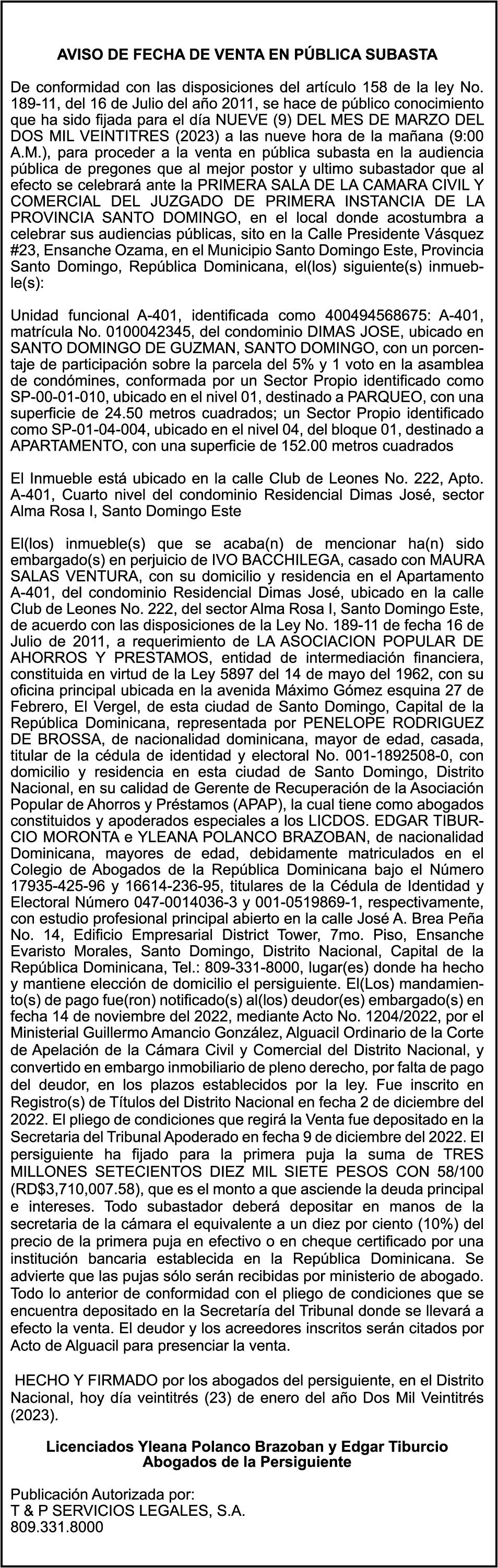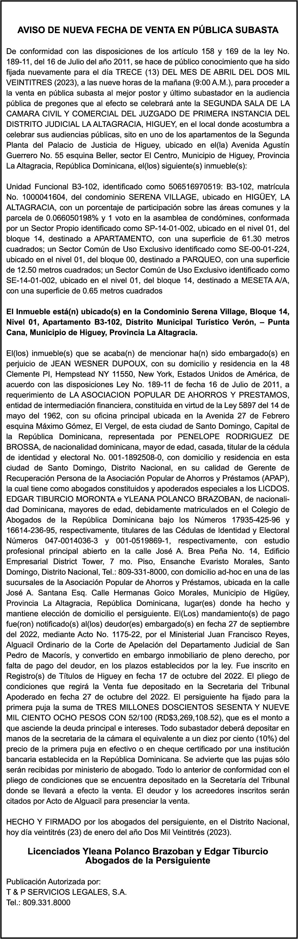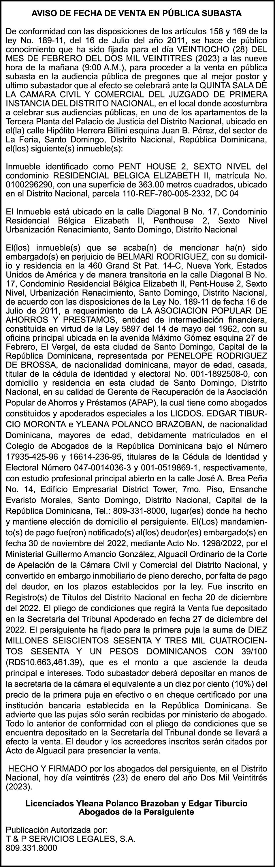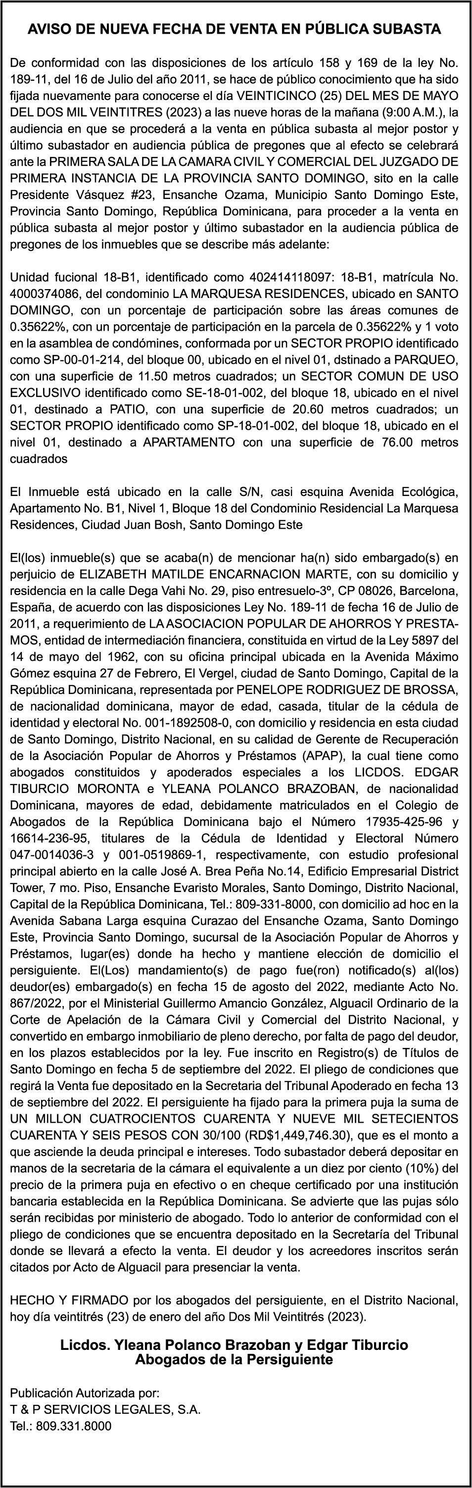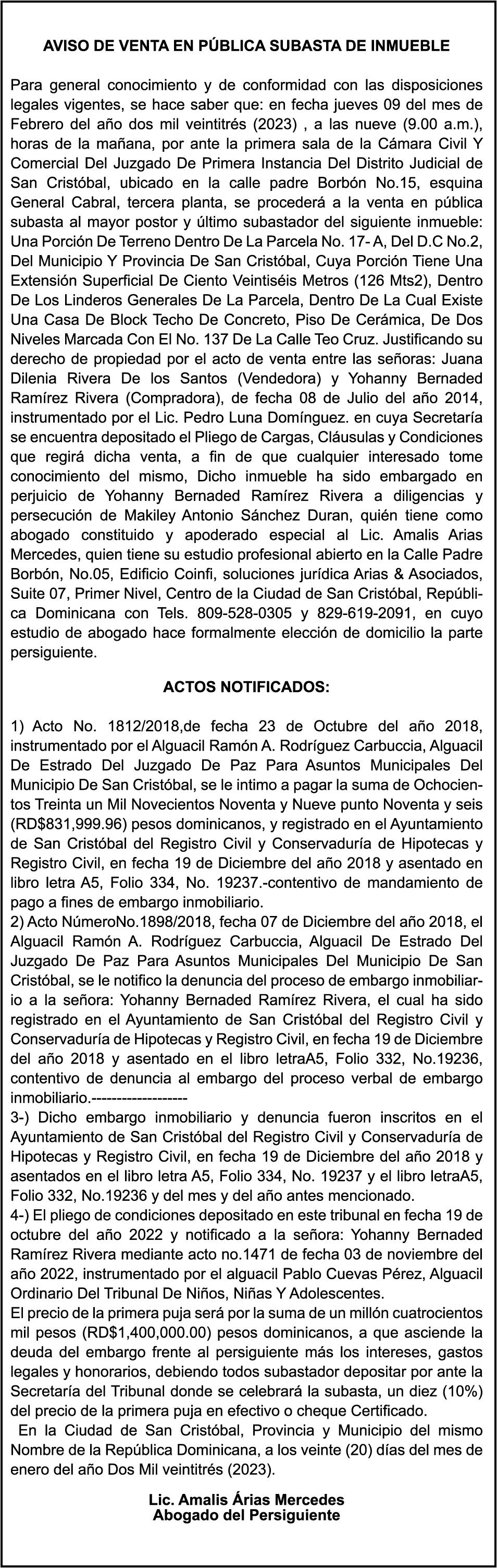 . 5 elCaribe, Lunes 23 De enero De 2023 LEGALES