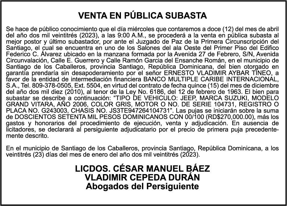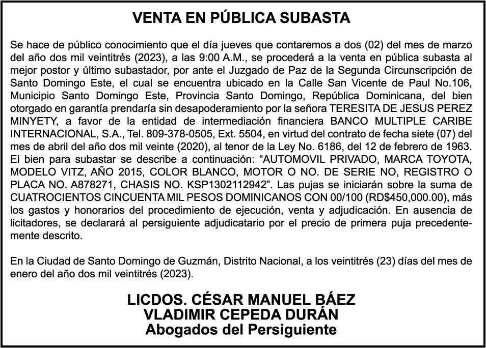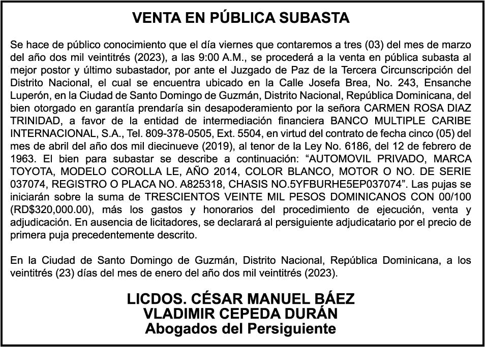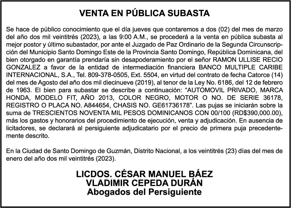 . 7 elCaribe, Lunes 23 De enero De 2023 LEGALES
