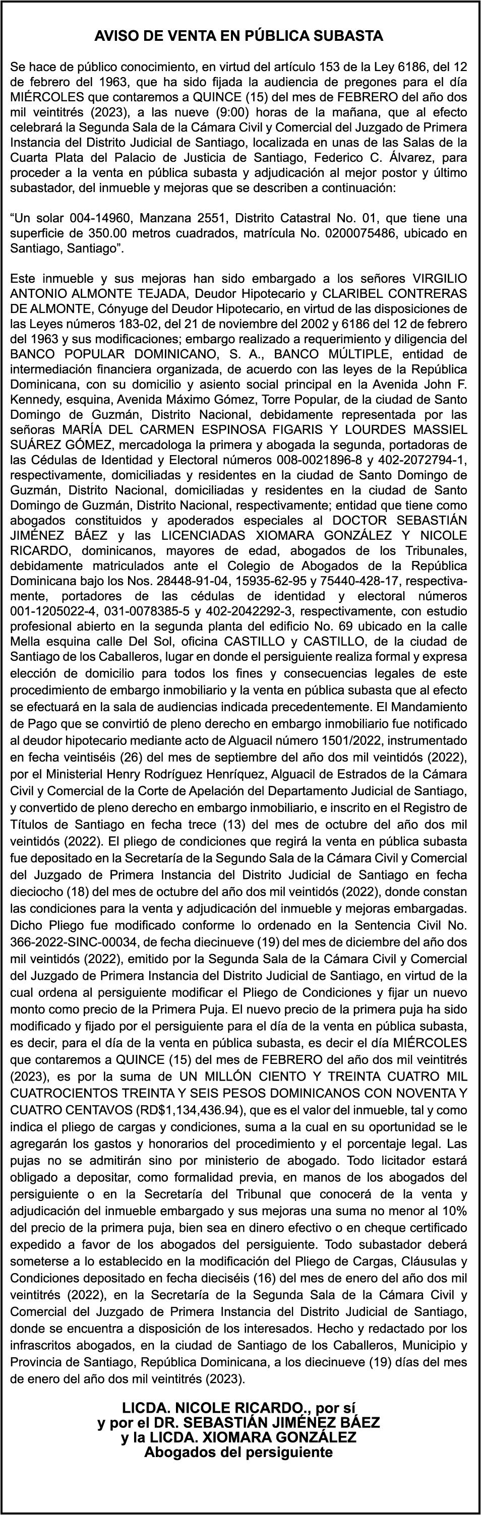 4. elCaribe, Lunes 23 De enero De 2023 LEGALES