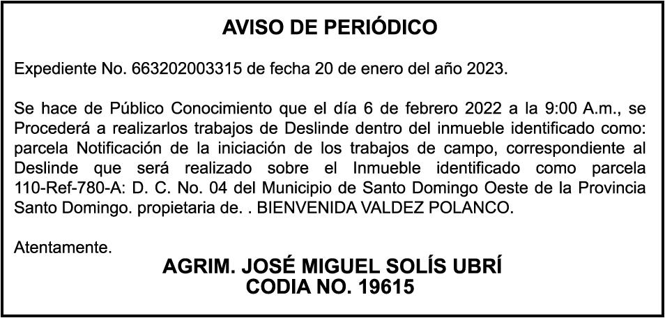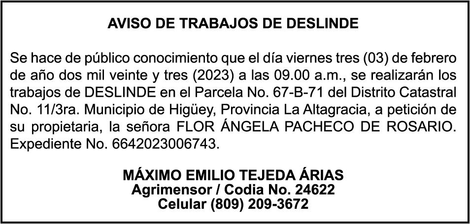 . 7 elCaribe, Miércoles 25 De enero De 2023 LEGALES