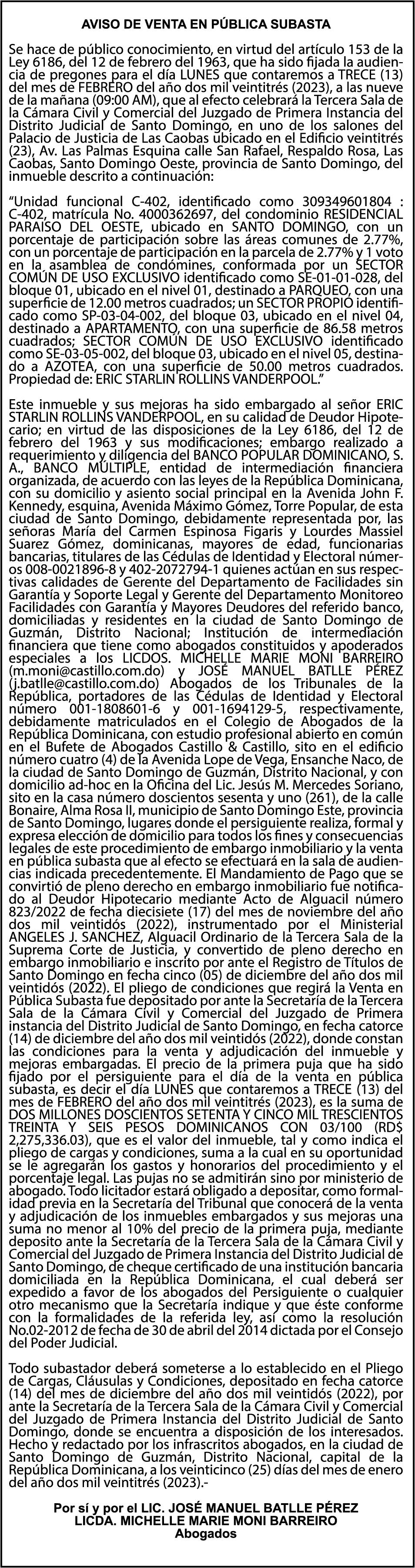8. elCaribe, Miércoles 25 De enero De 2023 LEGALES