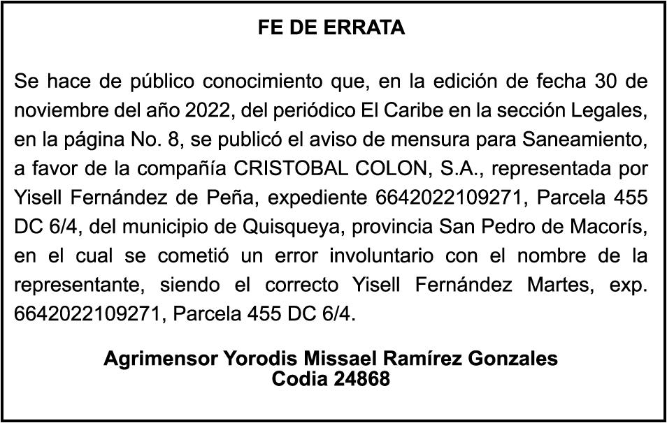 8. elCaribe, Viernes 27 De enero De 2023 LEGALES