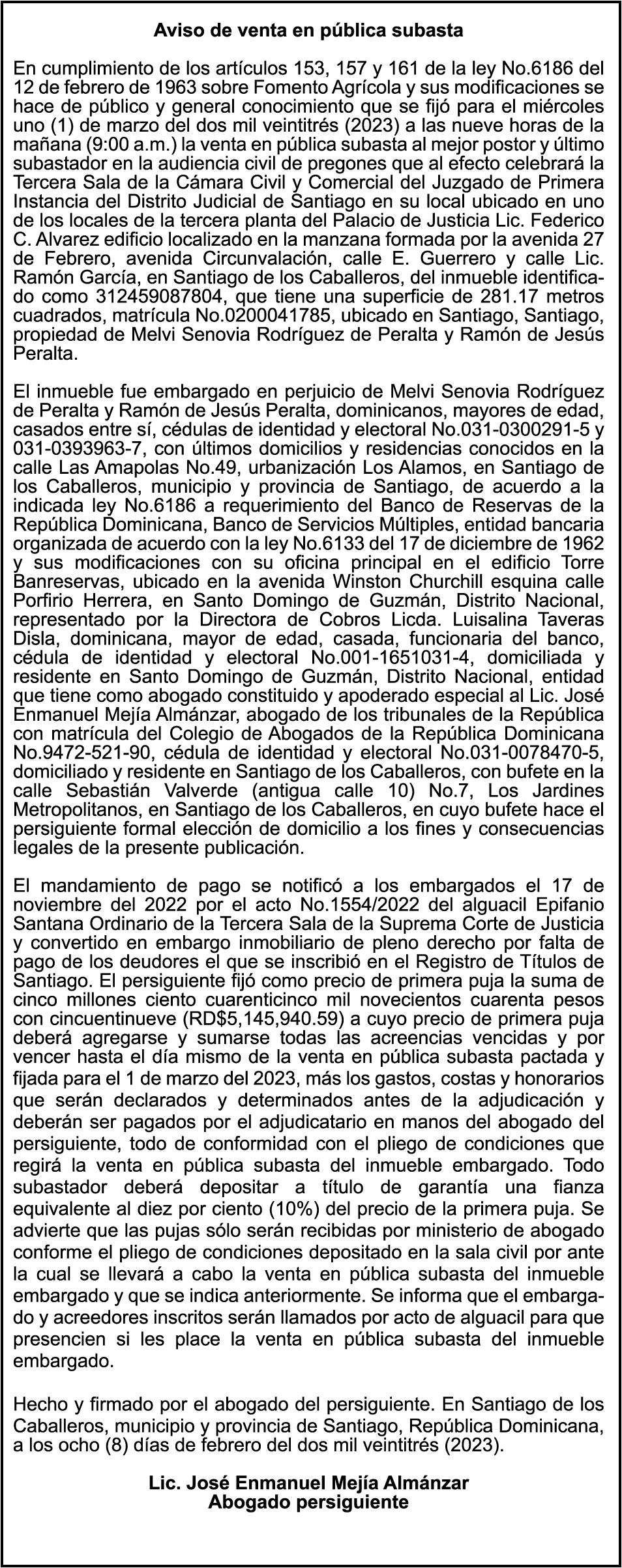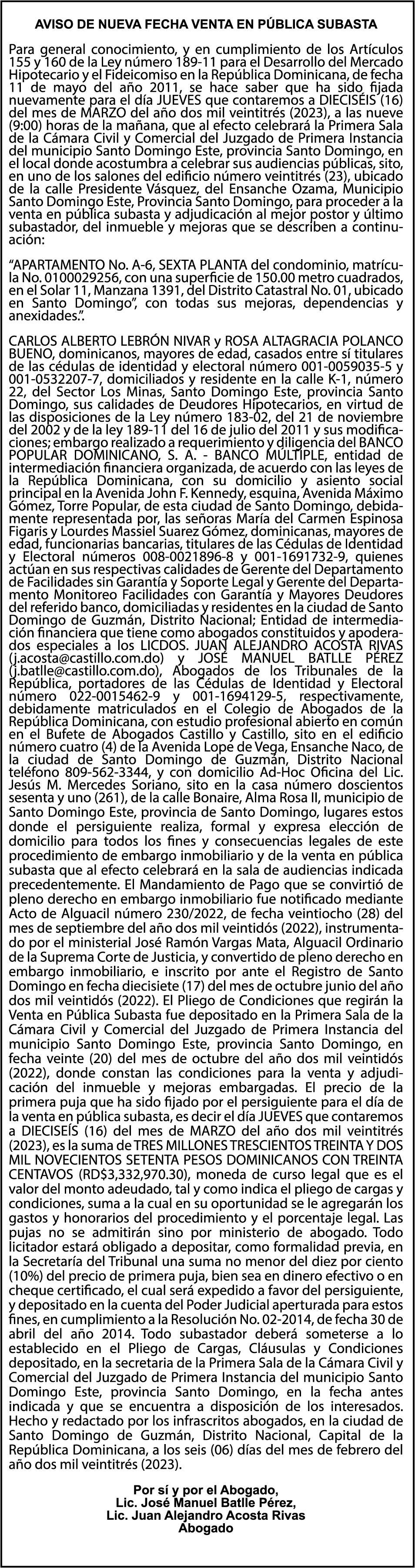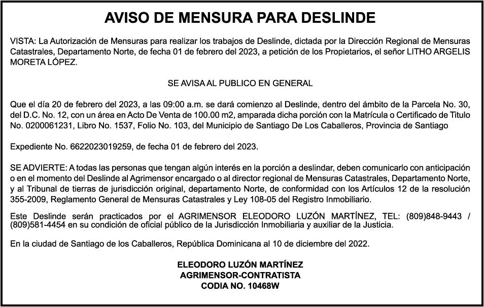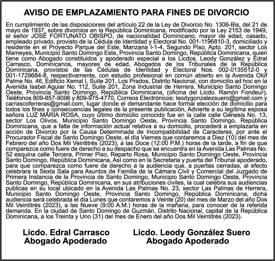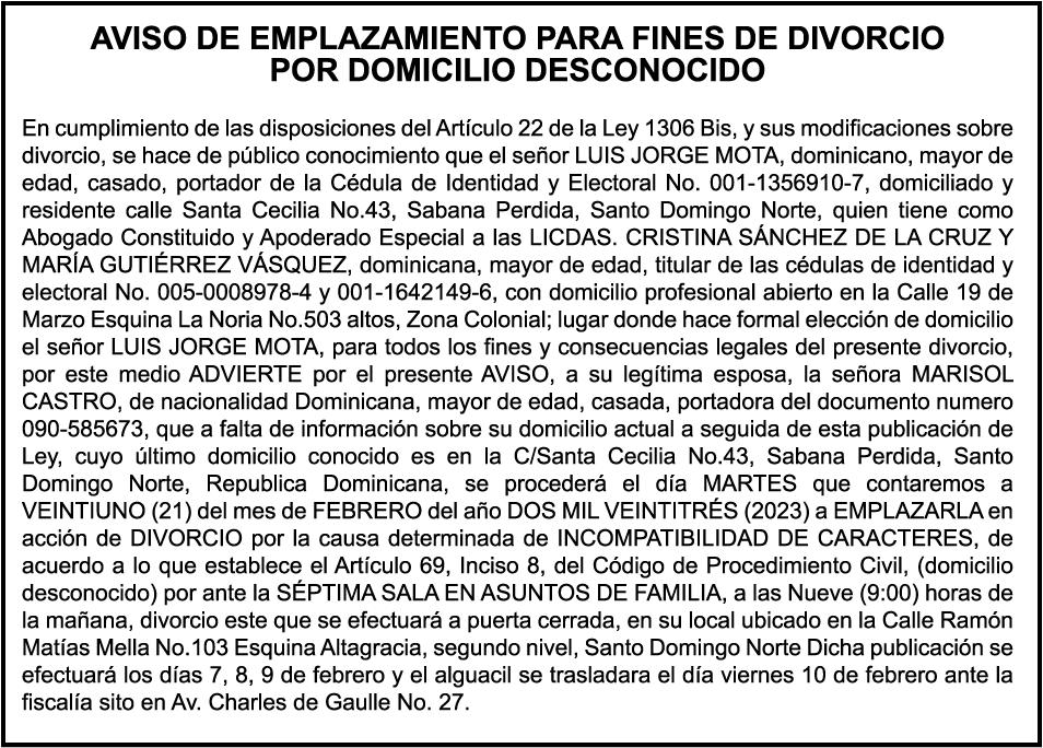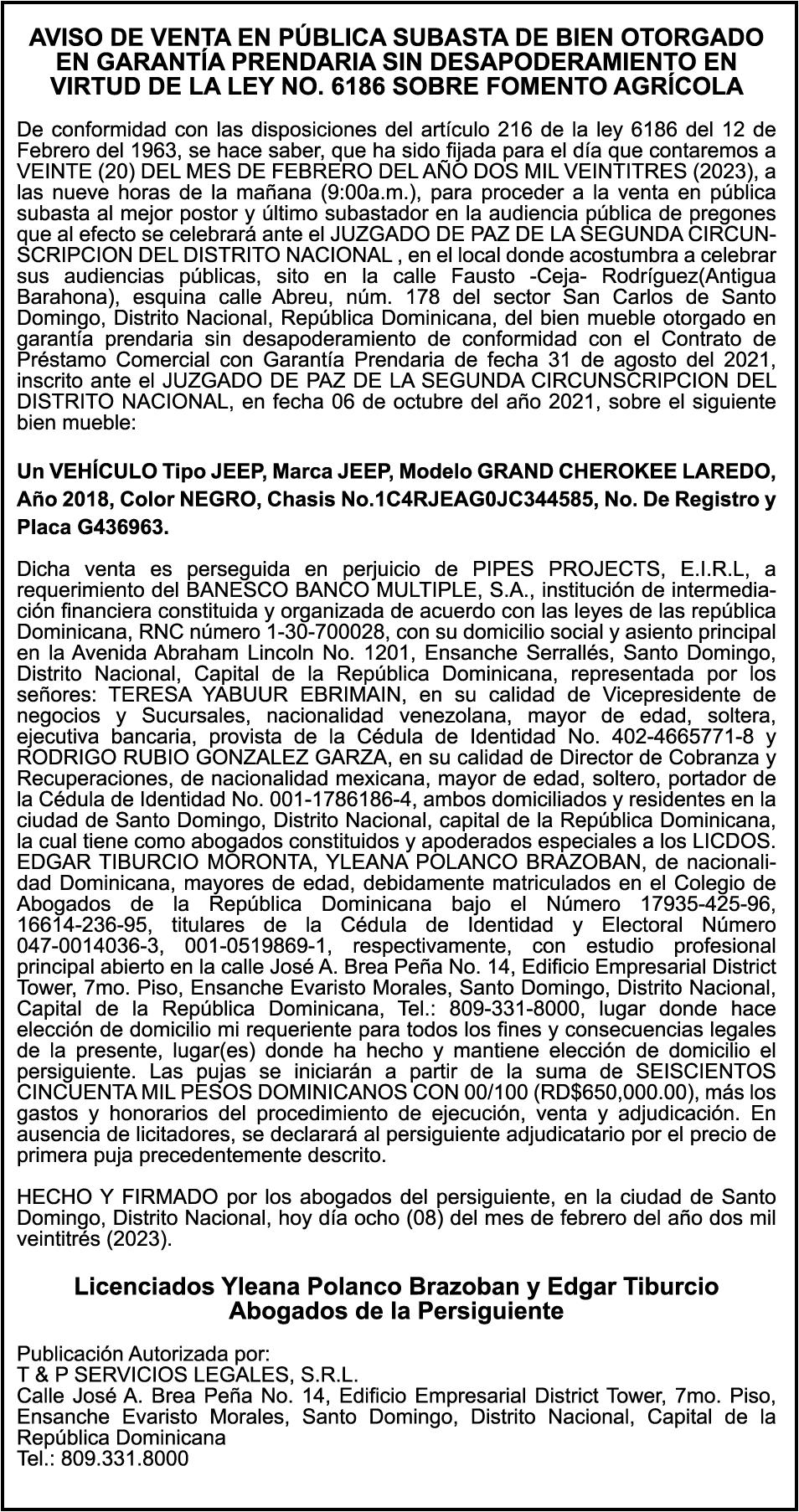 12. elCaribe, Miércoles 8 De Febrero De 2023 LEGALES