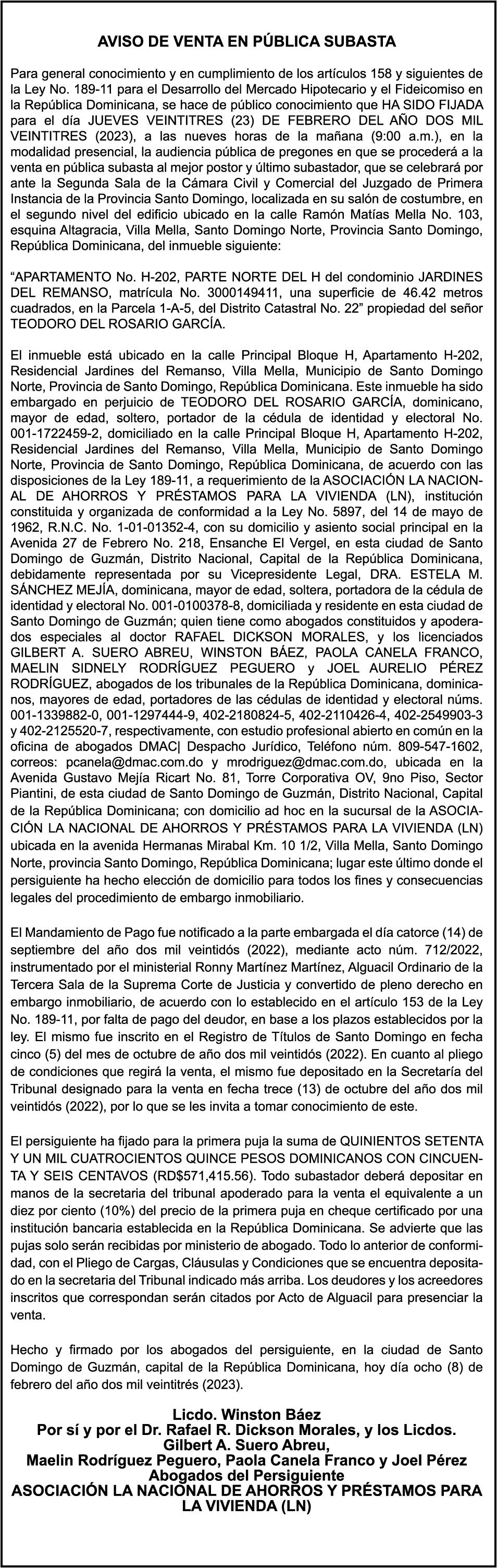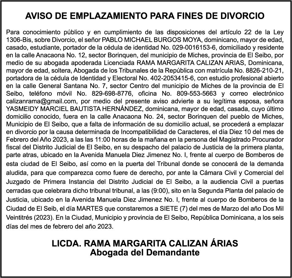 10. elCaribe, Miércoles 8 De Febrero De 2023 LEGALES