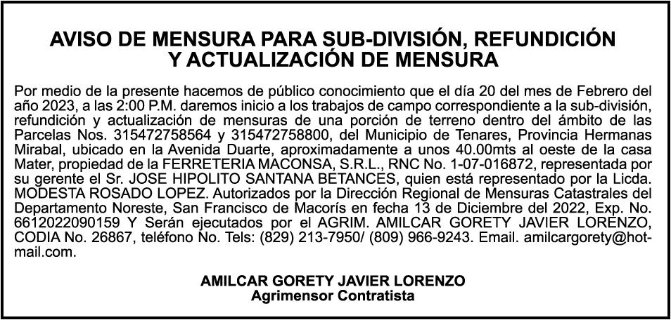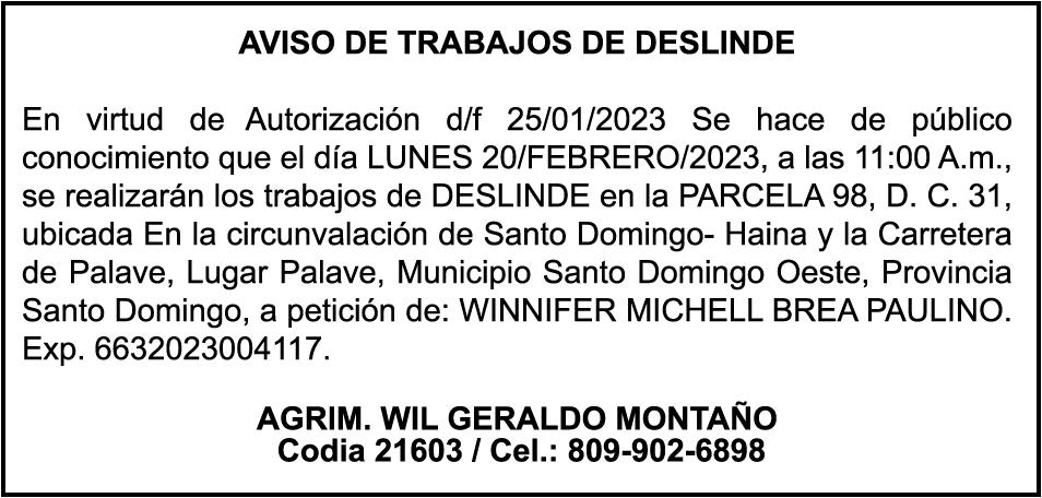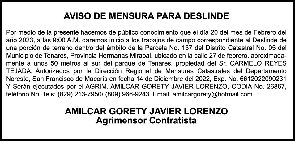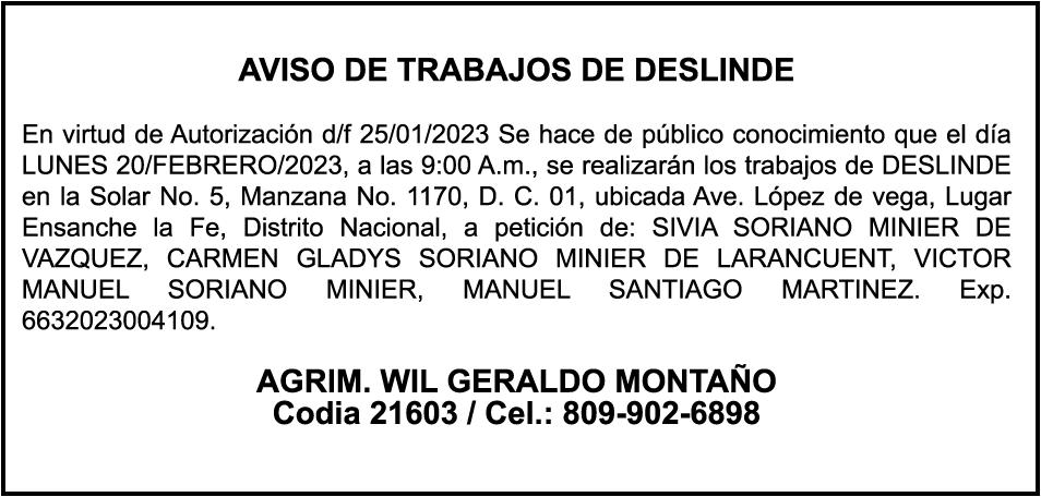 . 7 elCaribe, Miércoles 8 De Febrero De 2023 LEGALES