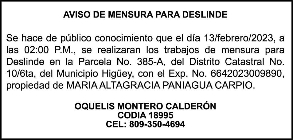 4. elCaribe, Miércoles 8 De Febrero De 2023 LEGALES