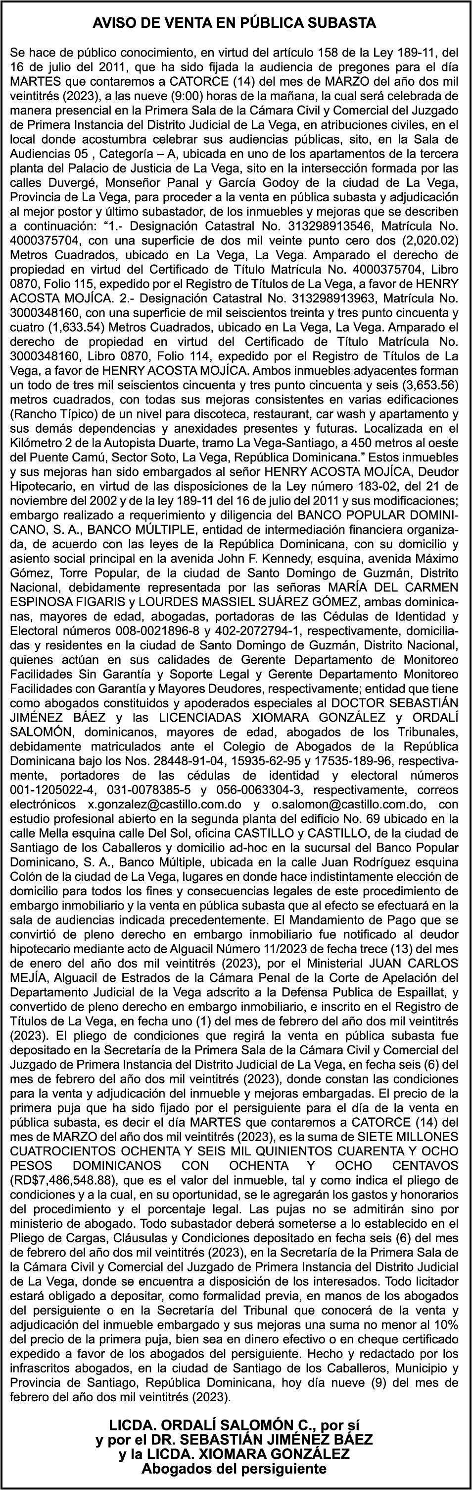 . 7 elCaribe, Lunes 13 De Febrero De 2023 LEGALES